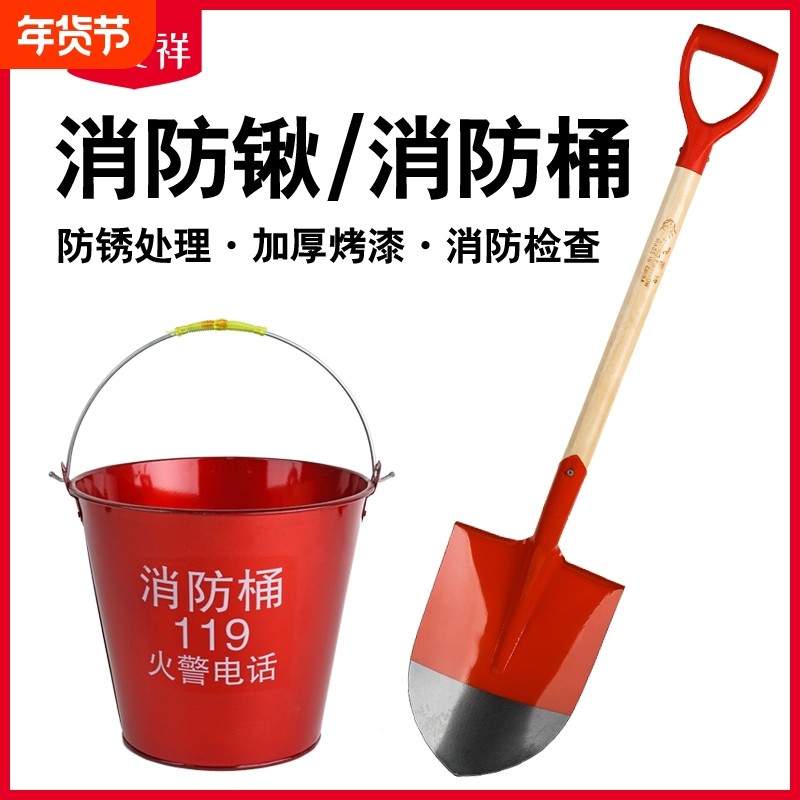 消防半圆圆铁桶专用铁锹不锈钢黄沙烤漆铁皮沙桶铁铲器材折叠手套