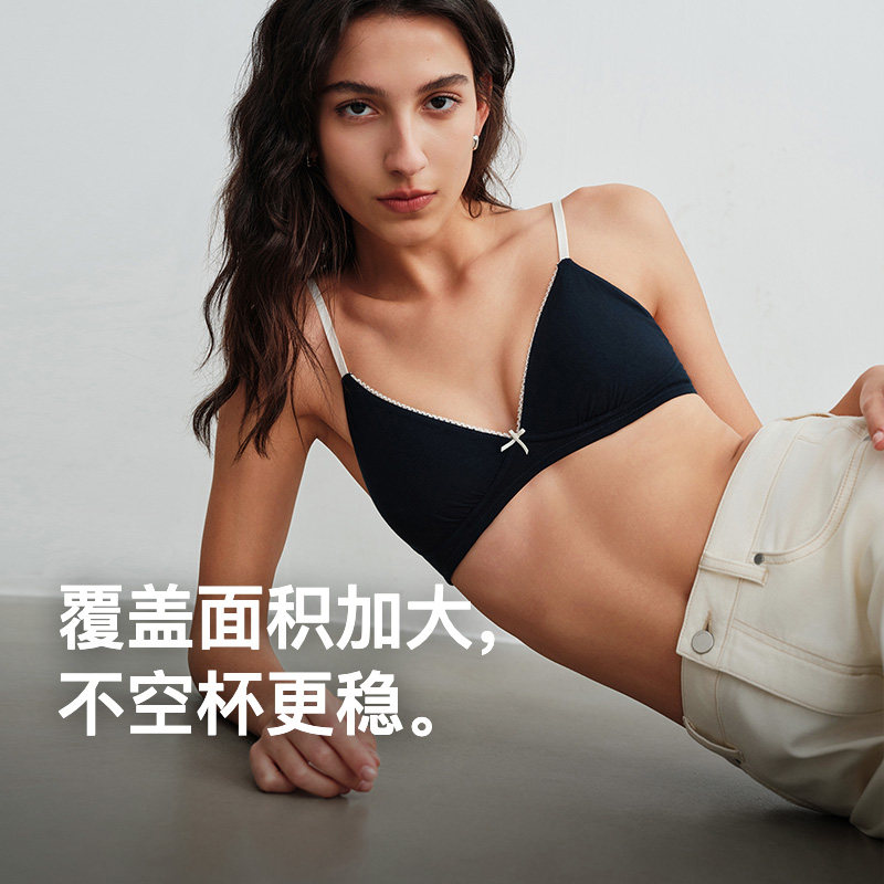 内外橙标好弹棉质三角杯文胸小胸细肩带无钢圈内衣秋季薄款NEIWAI