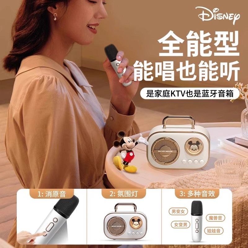 迪士尼精工话筒音响一体麦克风儿童唱k歌家庭ktv无线蓝牙小音箱