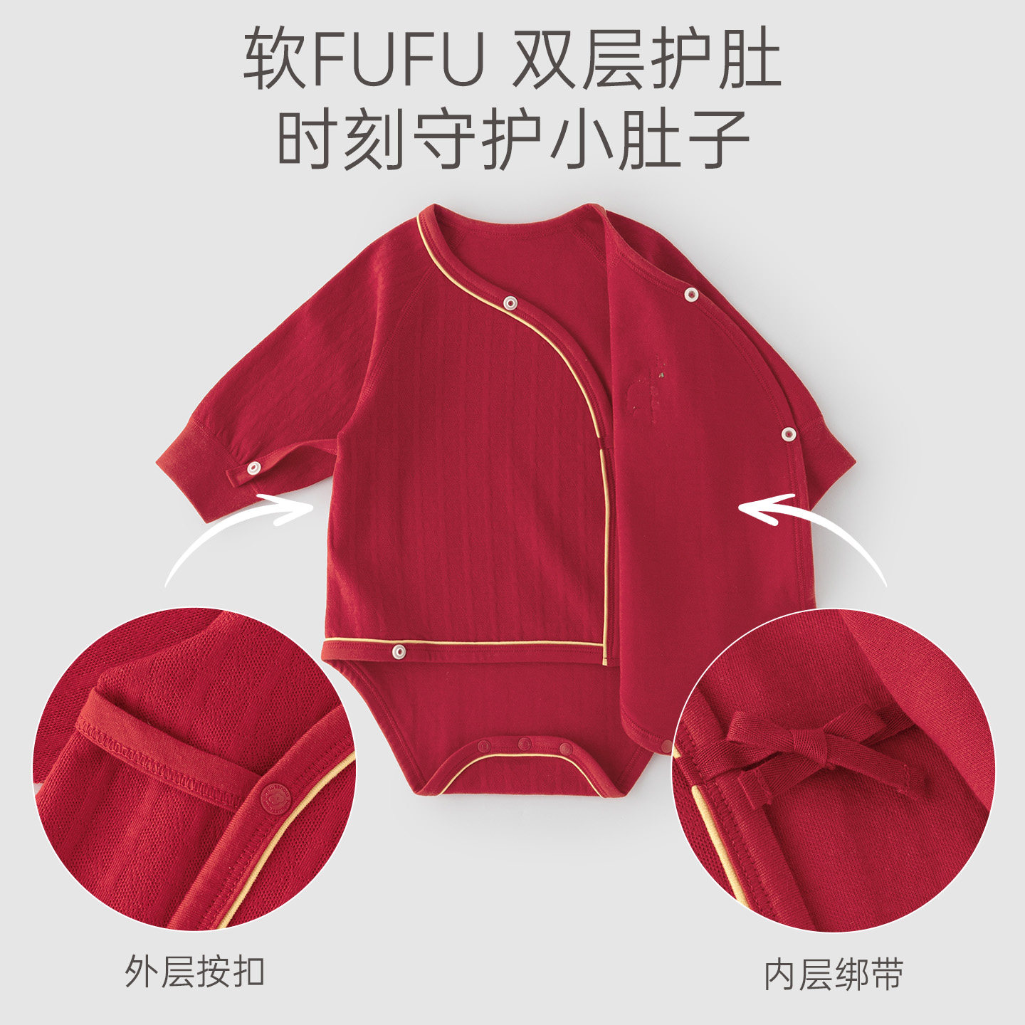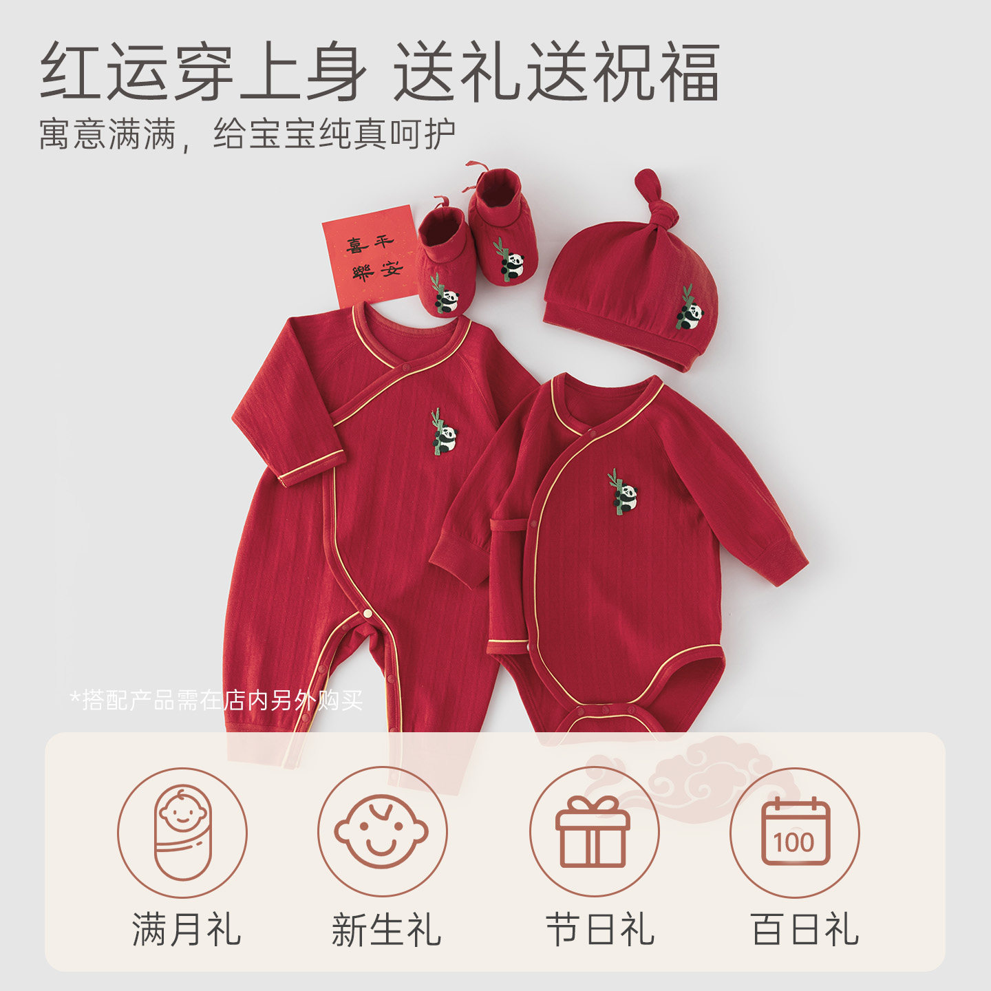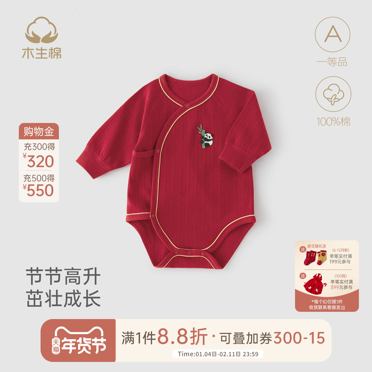 木生棉新生儿纯棉连体衣秋冬宝宝红色喜庆包屁衣婴儿无骨三角哈衣