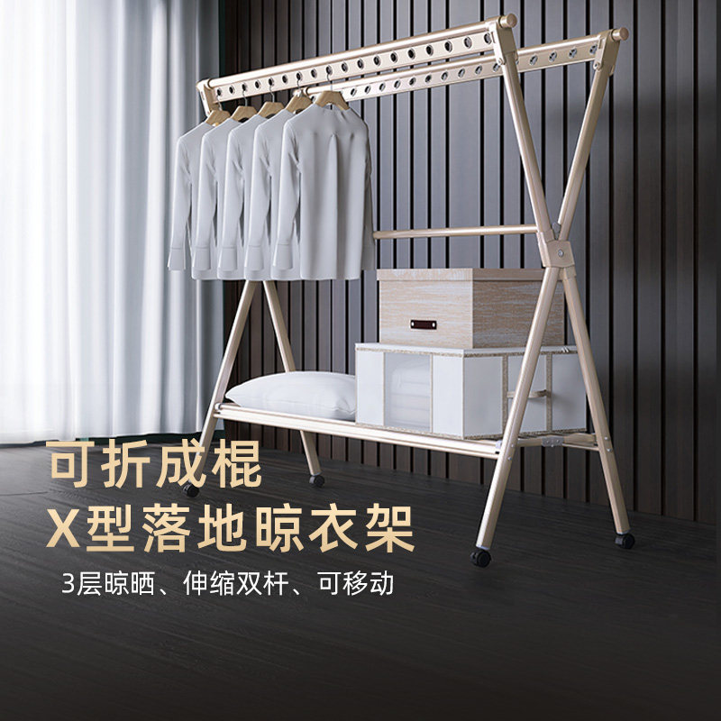 晾衣架落地家用卧室挂衣服简易室内凉衣杆折叠阳台伸缩晒衣帽架子
