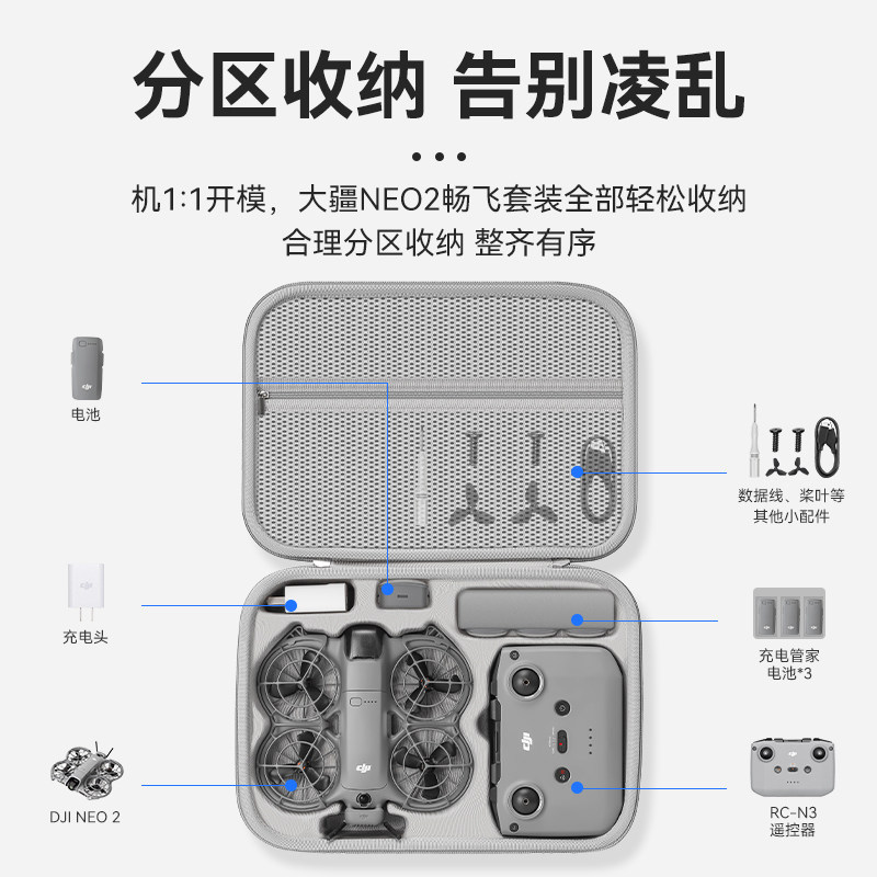 XFJI适用大疆DJI NEO2收纳包neo2硬壳标准双电畅飞套装体感户外便携盒斜挎掌上防摔防水掌上无人机配件体感包