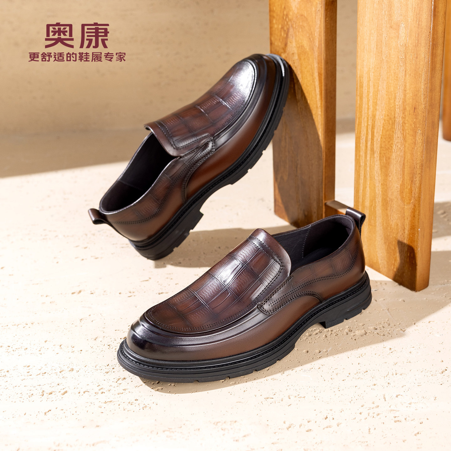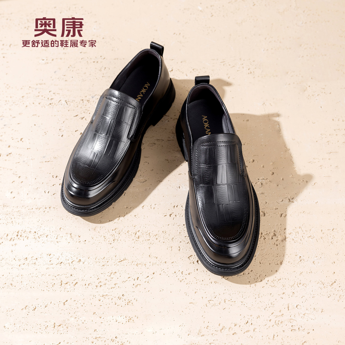 奥康 男鞋2026春季新款乐福鞋时尚百搭舒软一脚蹬豆豆鞋休闲皮鞋