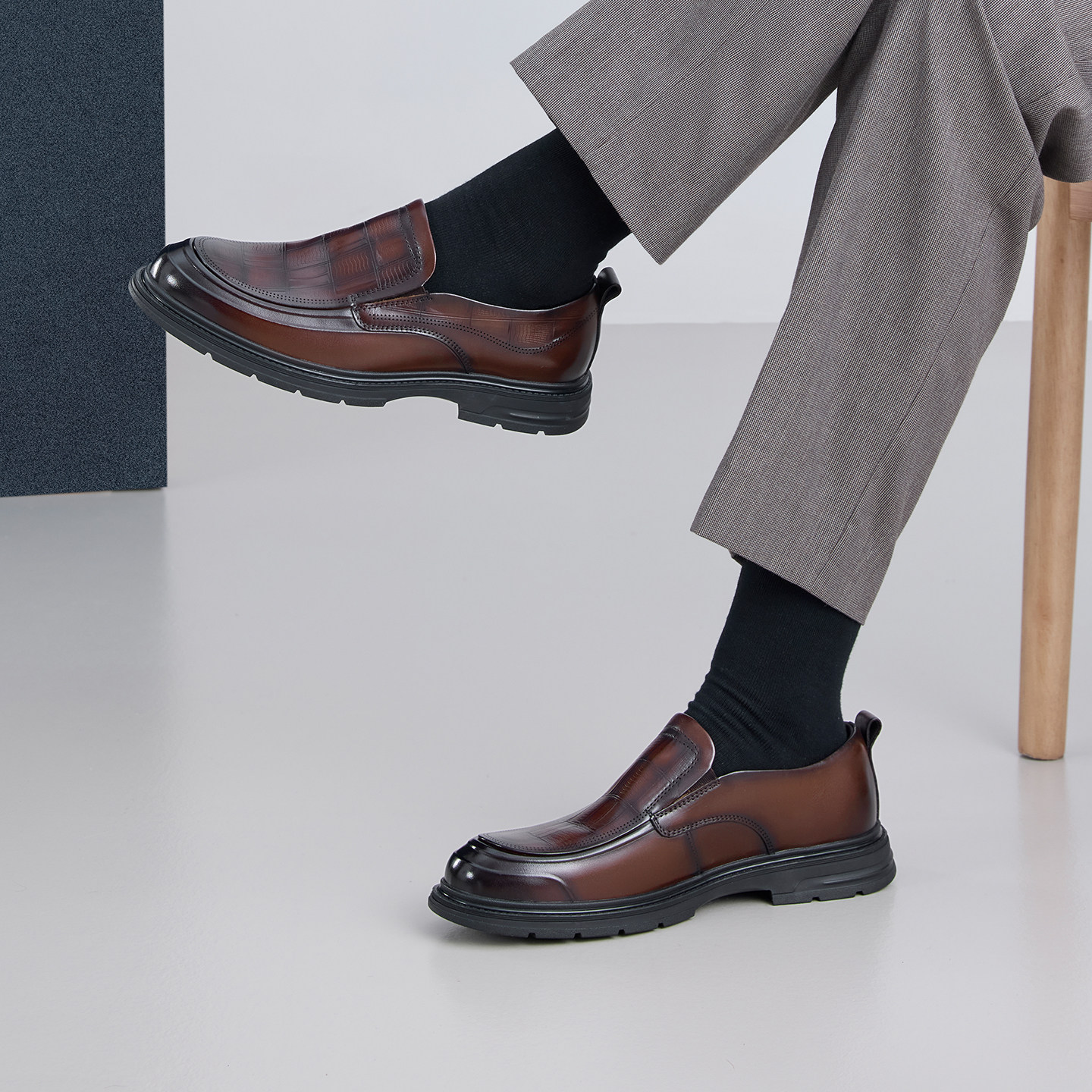 【轻量化增高5.5牛绒】chioryn青润乐福鞋男复古老钱风一脚蹬皮鞋