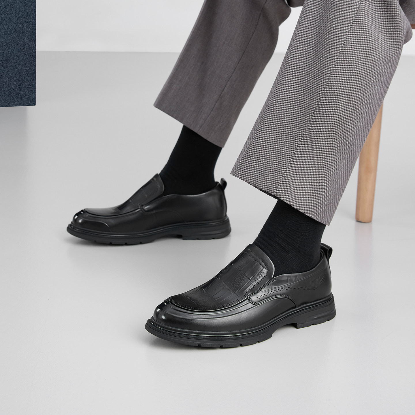 【轻量化增高】chioryn青润乐福鞋男士小牛皮厚底皮鞋休闲豆豆鞋