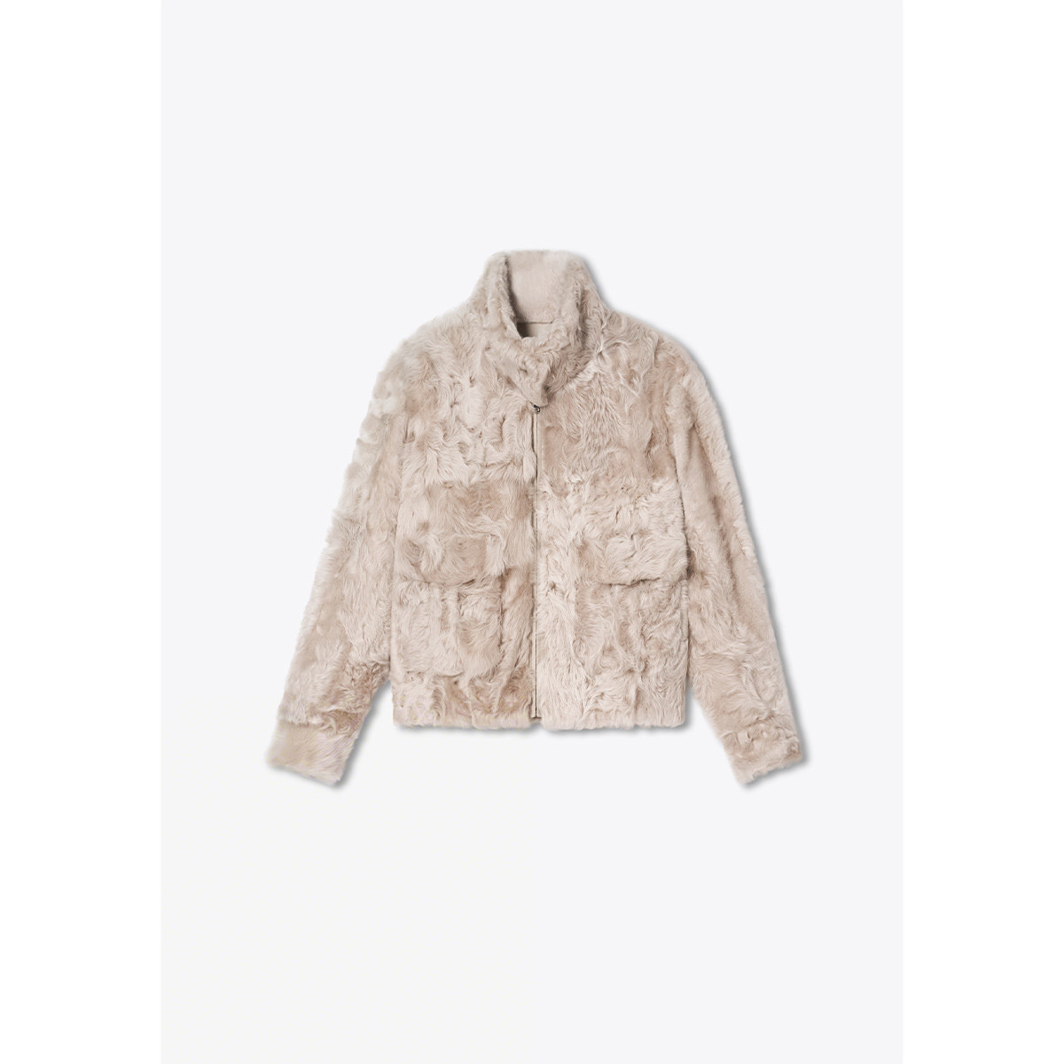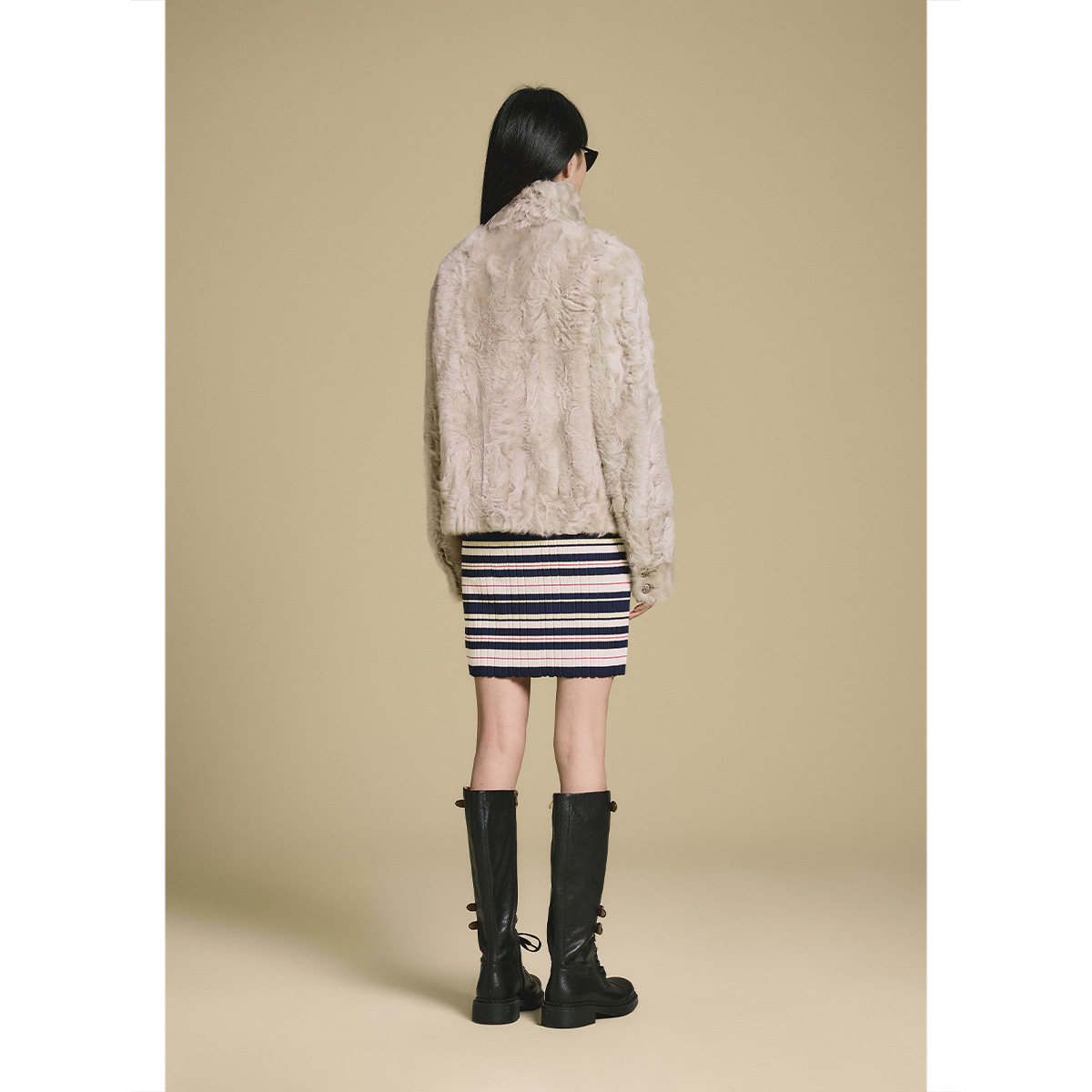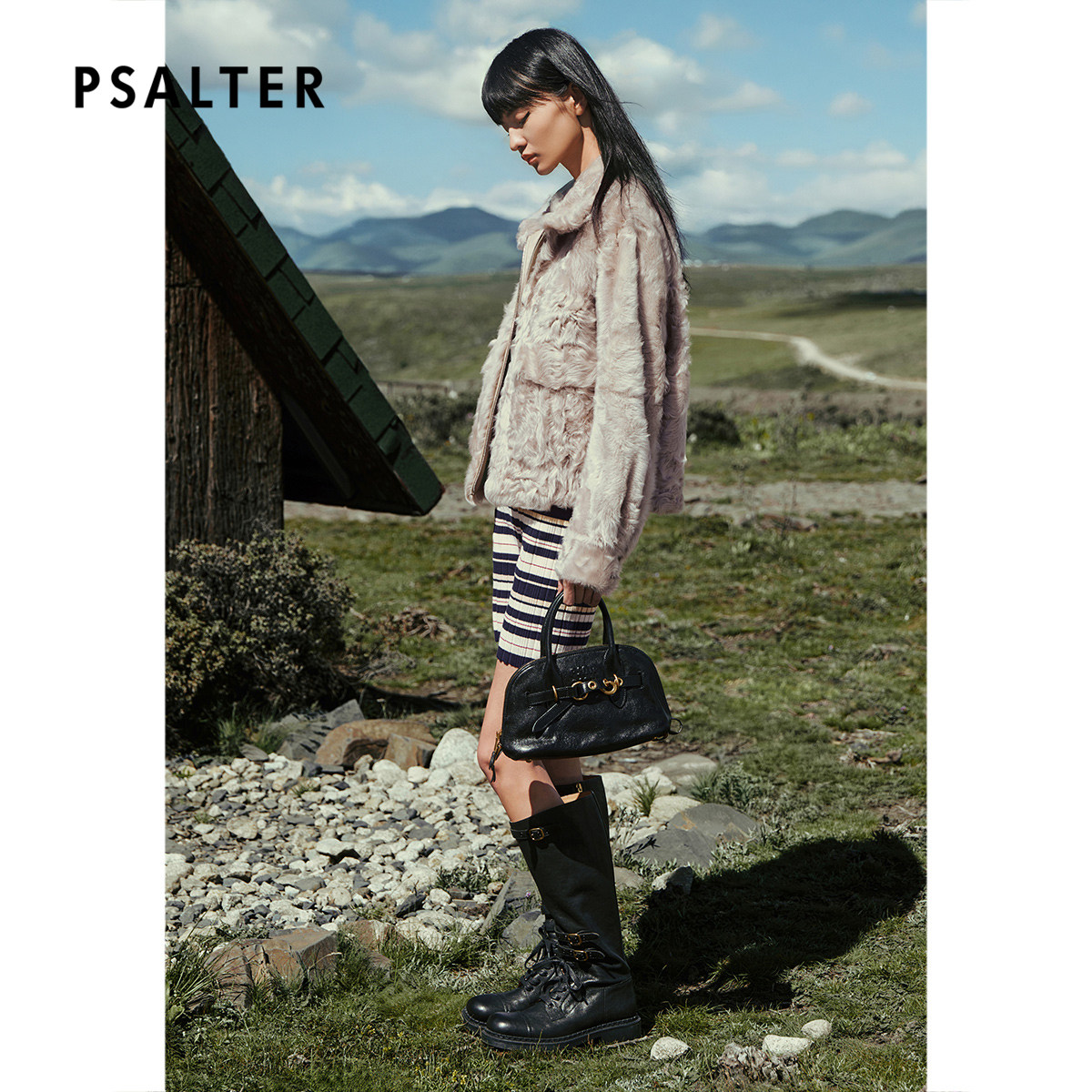 PSALTER诗篇浅驼色立领羊毛皮箱型短款皮草外套2025冬季新款