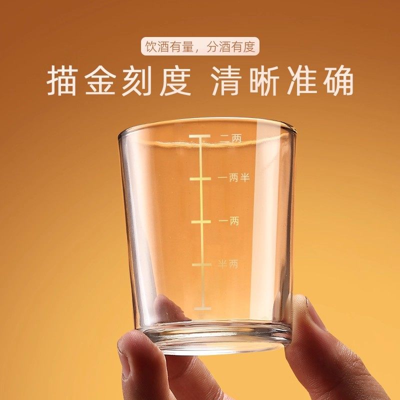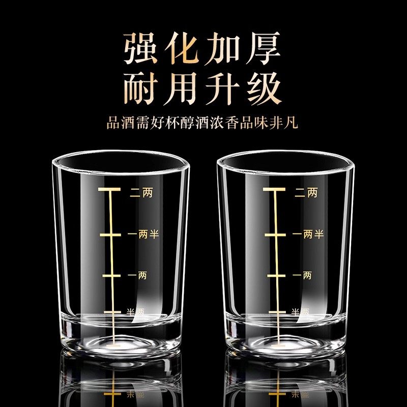 奢华金边二两白酒杯带刻度家用酒具2两杯套装钢化玻璃杯啤酒杯子