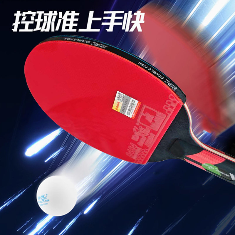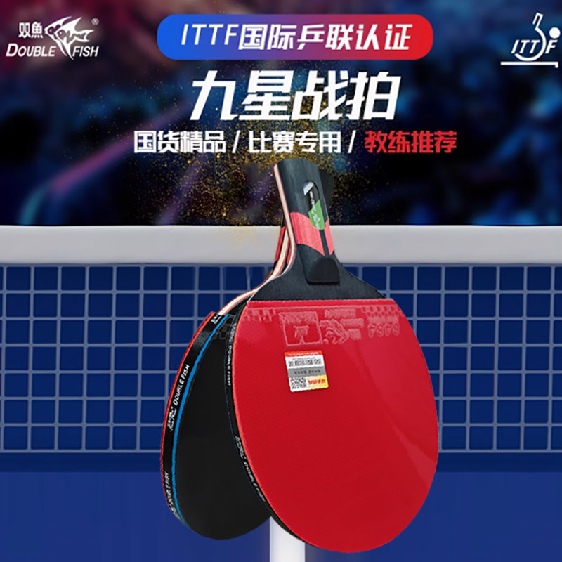 双鱼乒乓球拍专业级胶皮单拍横直拍短长柄碳素球板高弹力9星九星