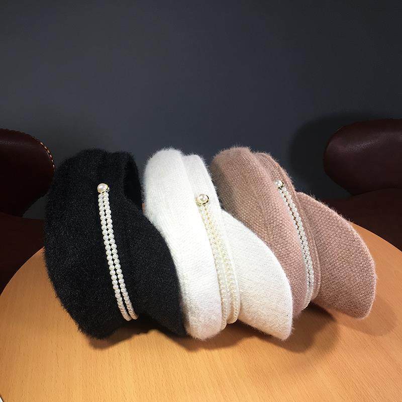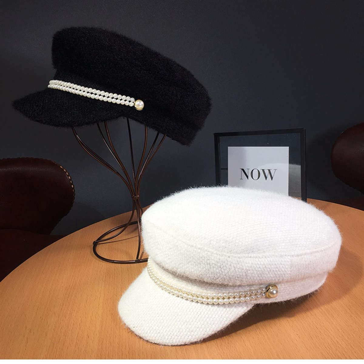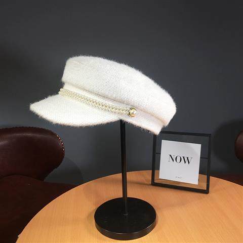 帽子女秋冬季韩版时尚百搭仿貂绒八角贝雷帽网红马海毛平顶海军帽