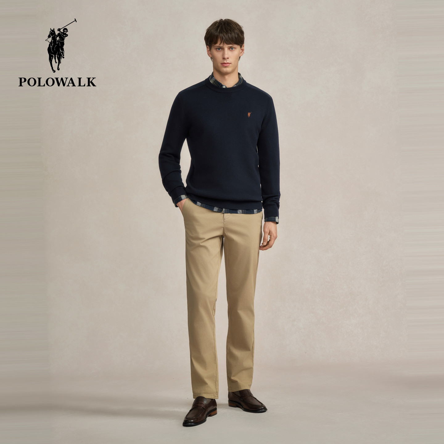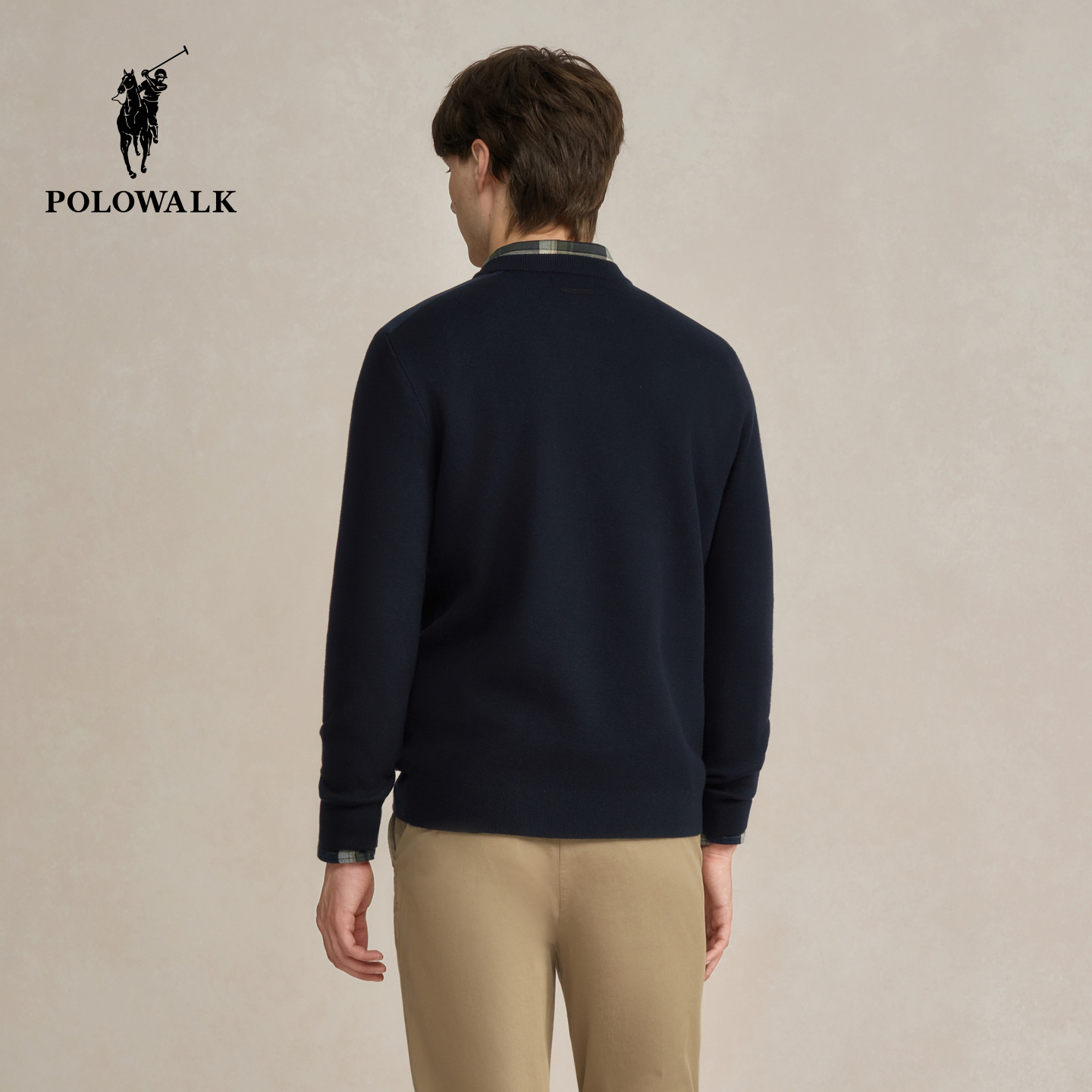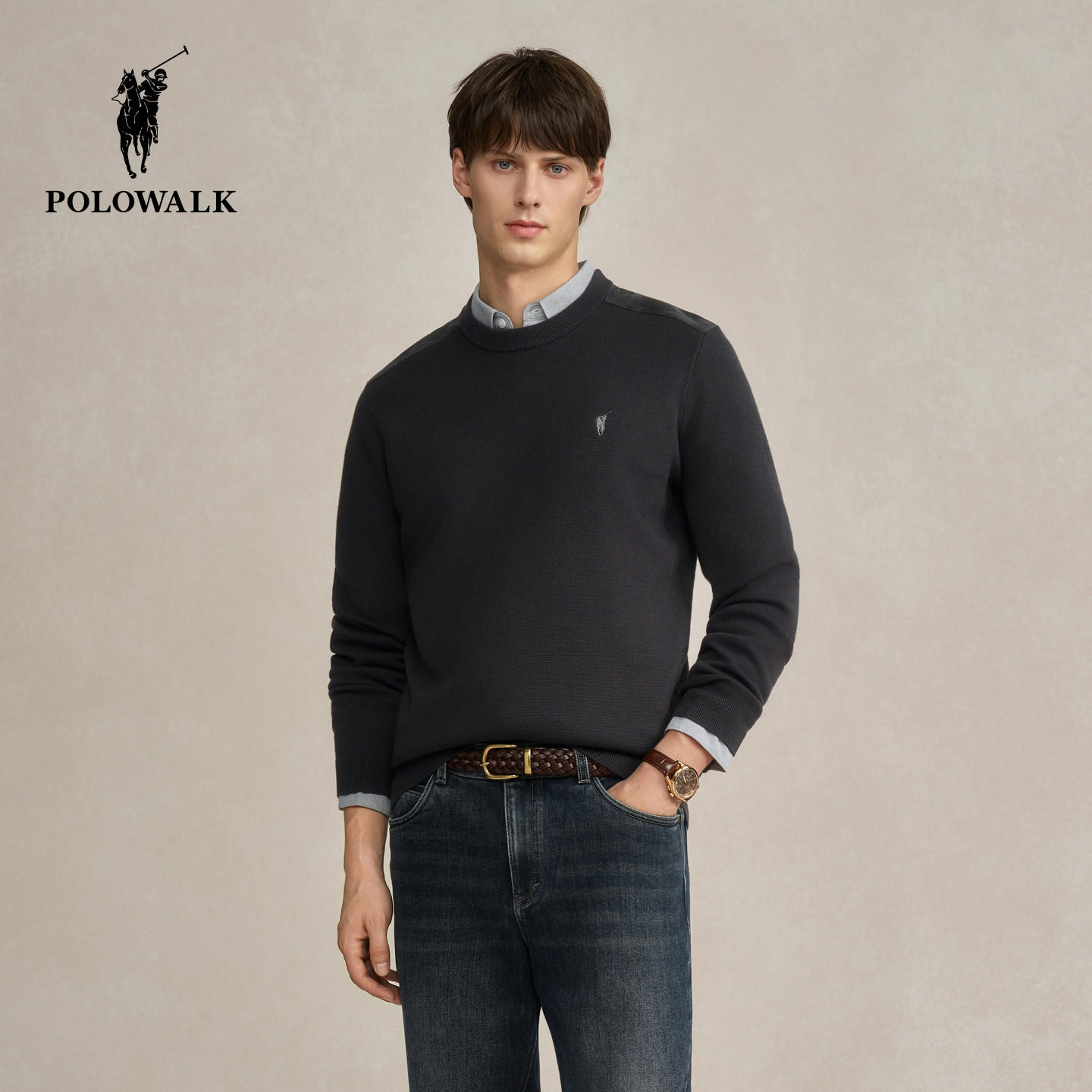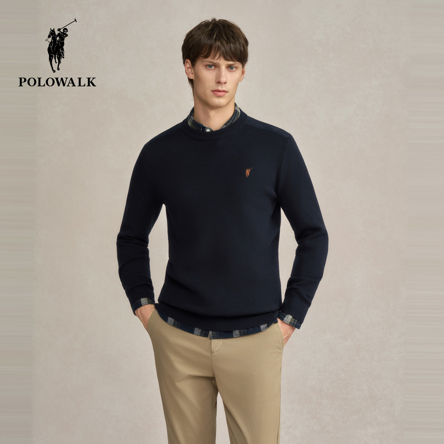 POLOWALK男式针织衫2025秋冬新品简约百搭纯色圆领套头打底衫男