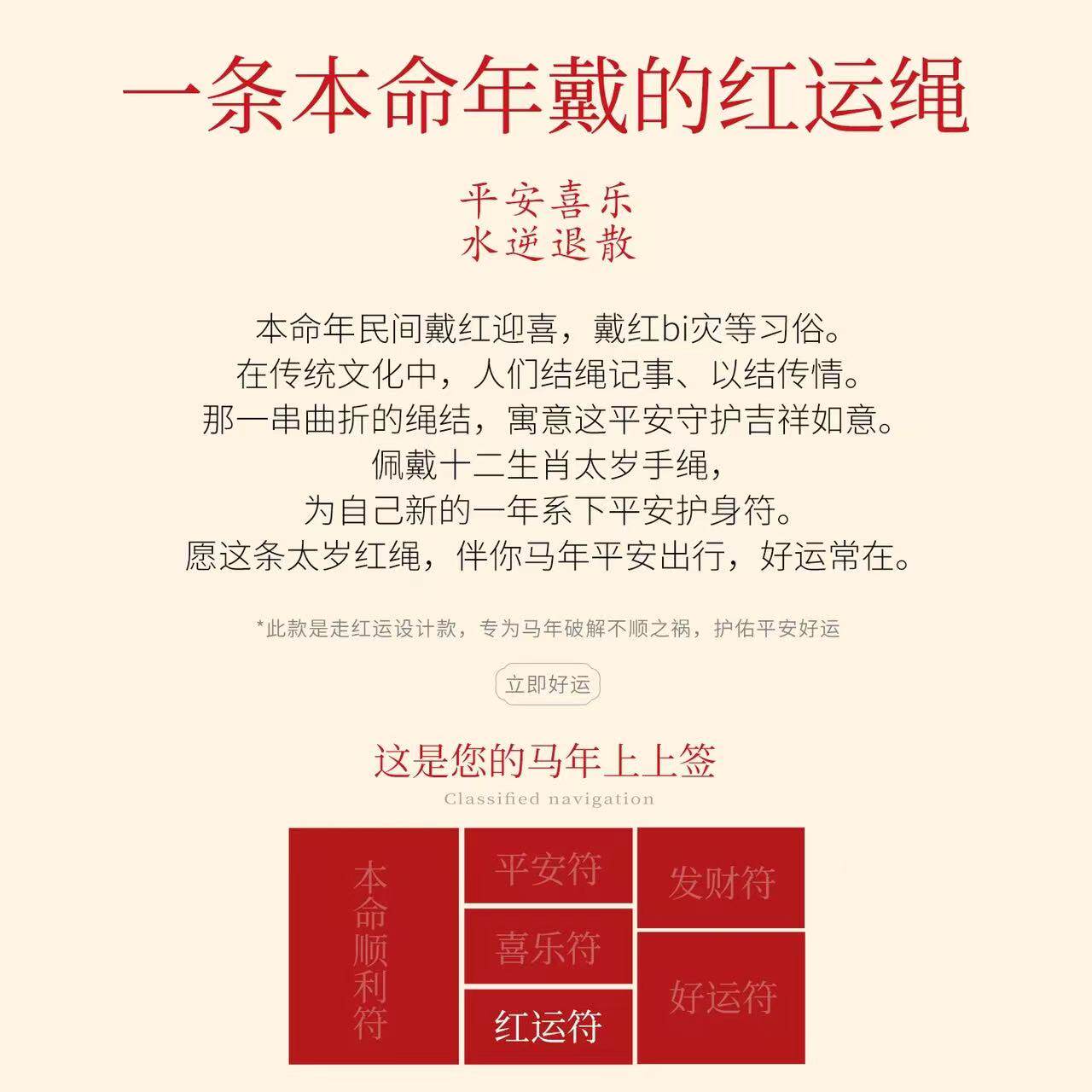 普陀山2026年犯太符手链红绳编织绳男女本命年化解手绳马年吉祥物