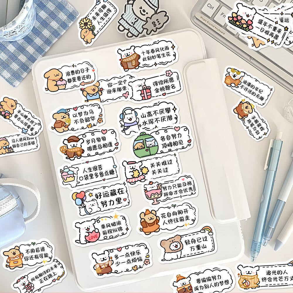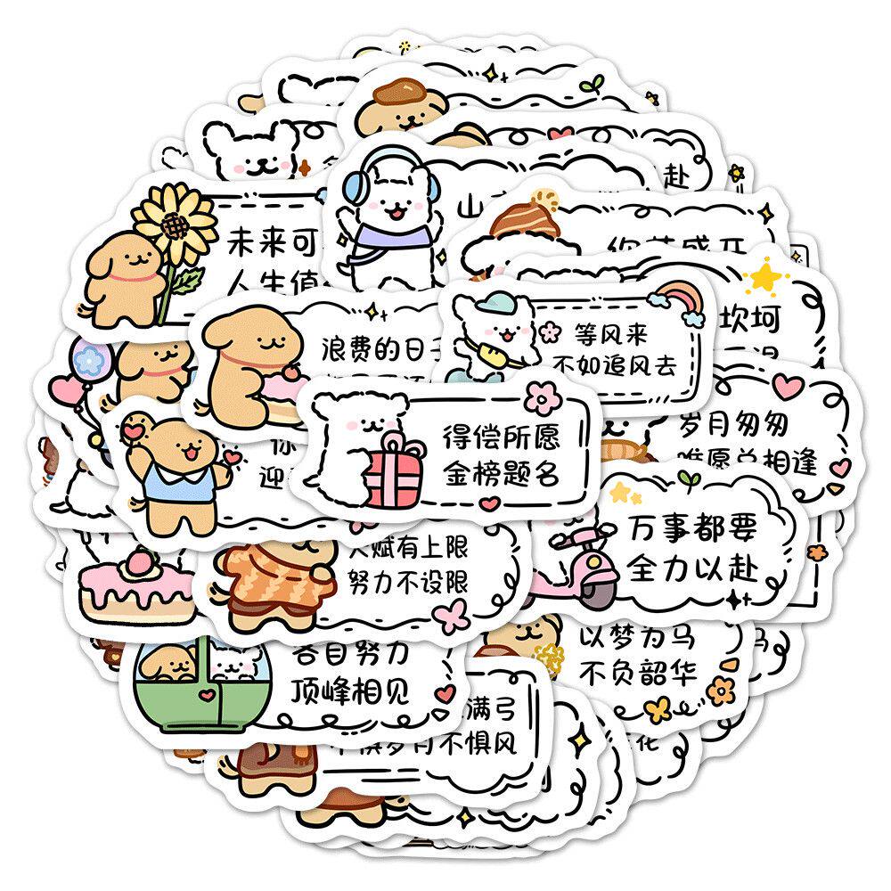 63张线条小狗书签贴纸ins风励志好运文案便签贴画装饰笔记本粘贴