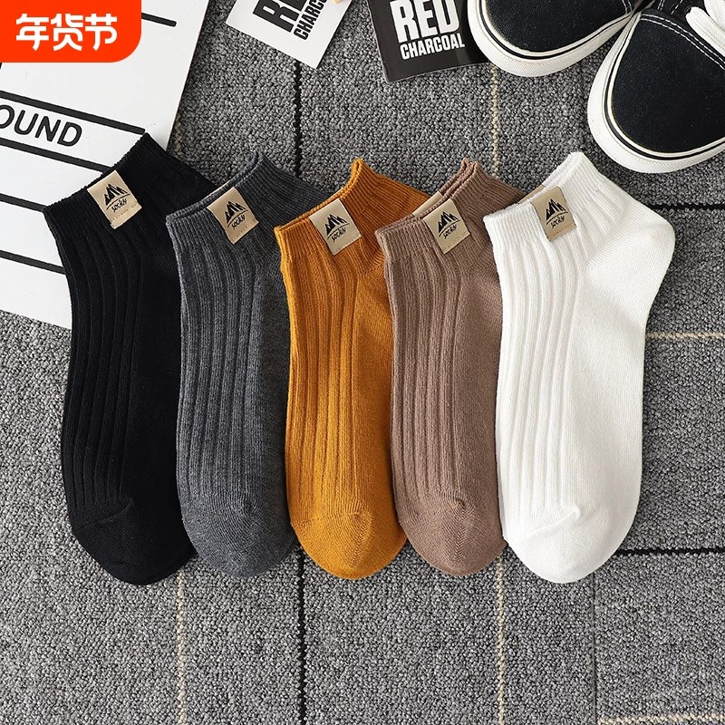 袜子男春秋季防臭吸汗透气短袜纯棉黑白色船袜男士短筒潮款运动袜