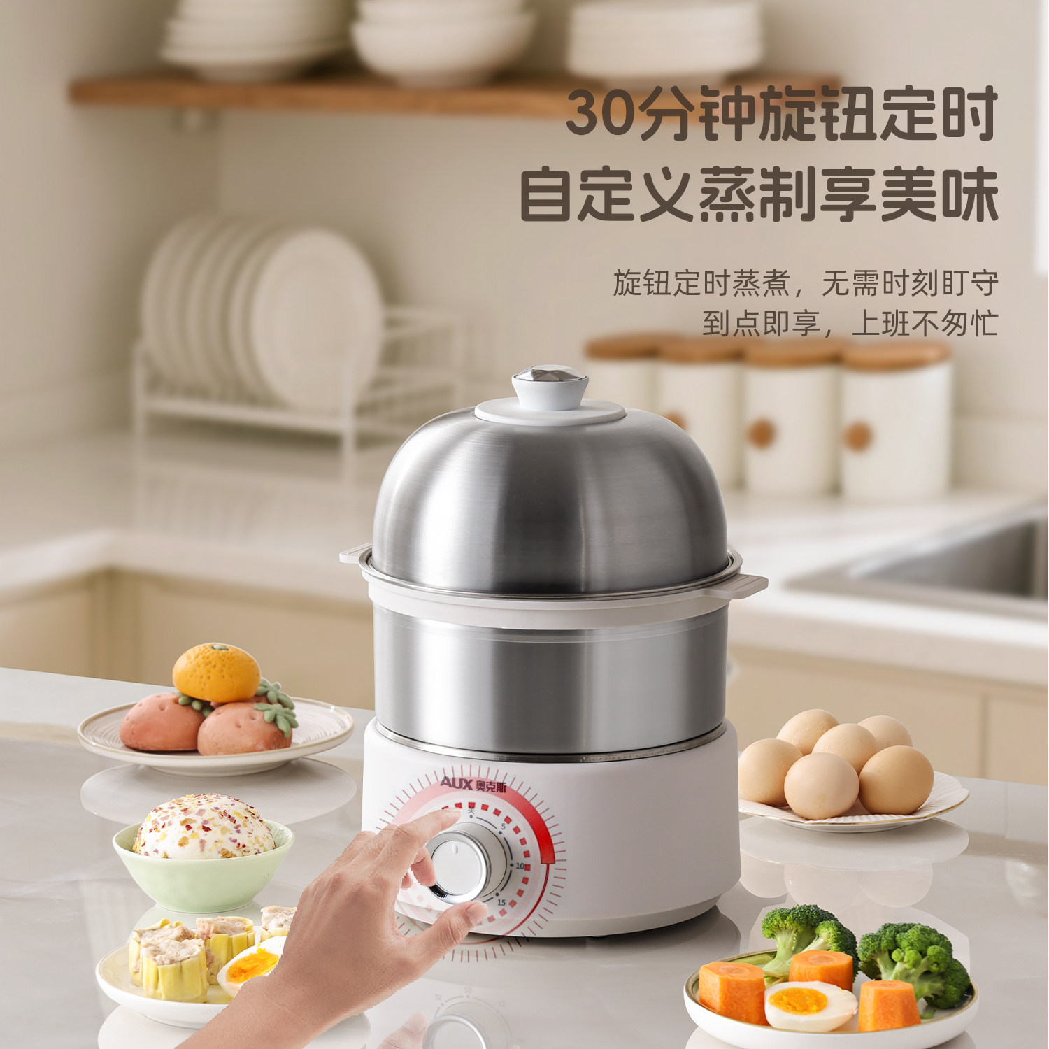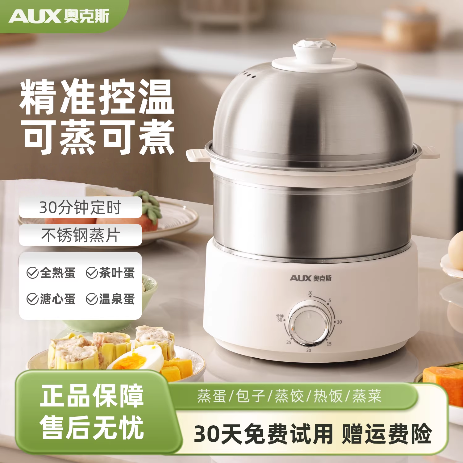 奥克斯煮蛋器蒸蛋器家用新款定时温泉蛋机自动断电家电蒸锅早餐机