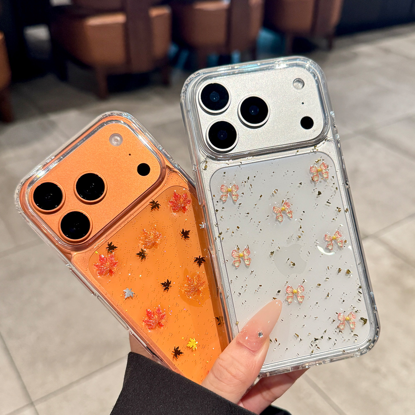 适用苹果17promax手机壳蝴蝶结iPhone17新款17pro高级感金箔16透明15全包镜头14防摔pm超薄16pro硅胶女款好看