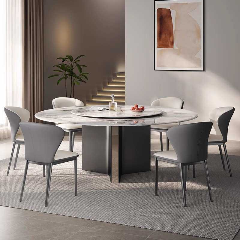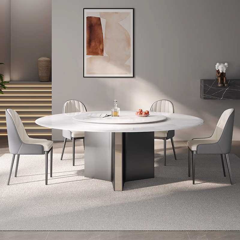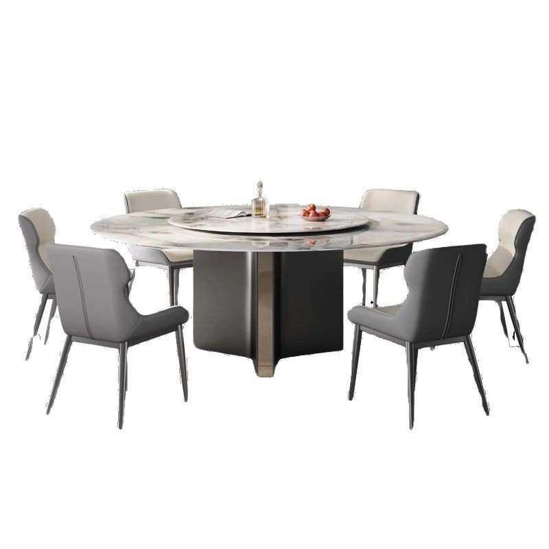 天然大理石餐桌椅带转盘高端奢石岩板小户型微晶石圆桌超晶石饭桌