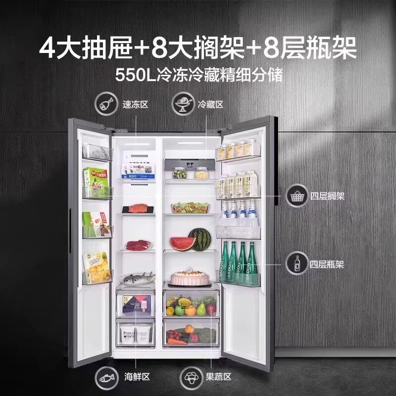 政府补贴海尔出品统帅538L对开双开门无霜一级变频大容量家用冰箱