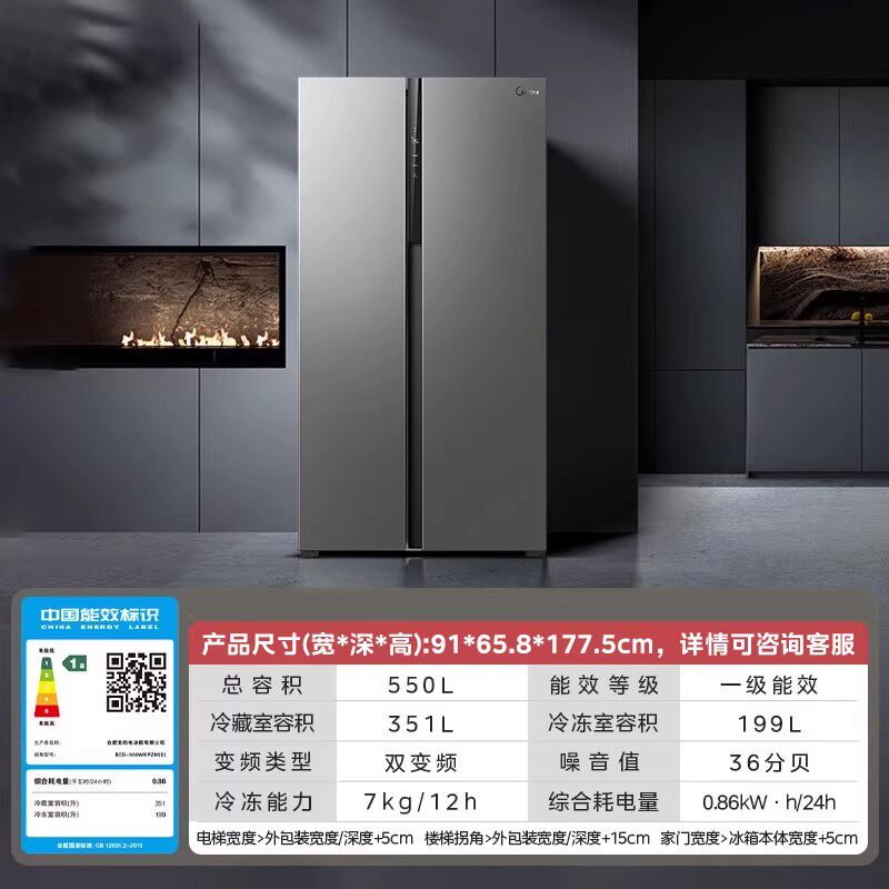 【换新补】美的550L对开双开门家用电冰箱大容量一级能效风冷无霜