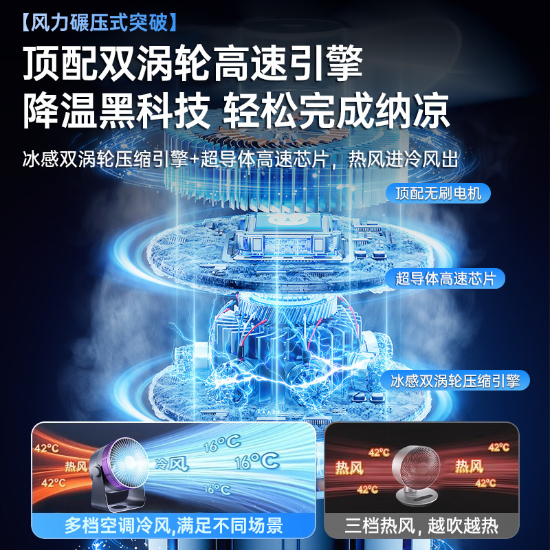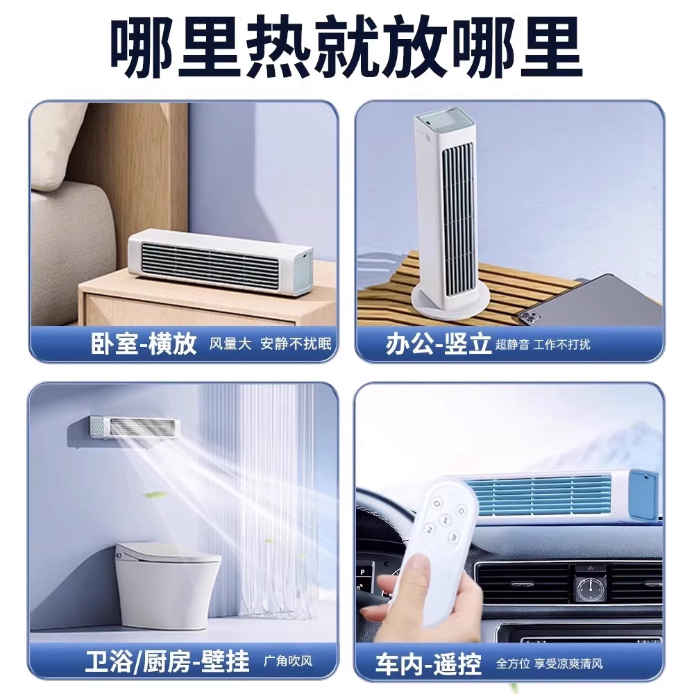 立式桌面风扇塔扇家用冷风机电风扇小型静音办公室桌上宿舍床上移动充插两用小空调超长续航降温神器空调伴侣