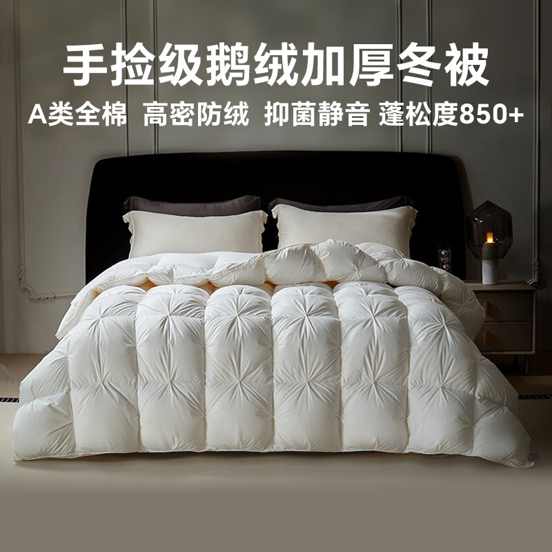 霞珍羽绒被鹅绒被95白鹅绒被子被芯双人保暖加厚冬被纯棉夏被正品