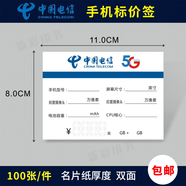 电信5G手机标价签价格牌 全网通手机标价牌 柜台价格展示牌标签纸