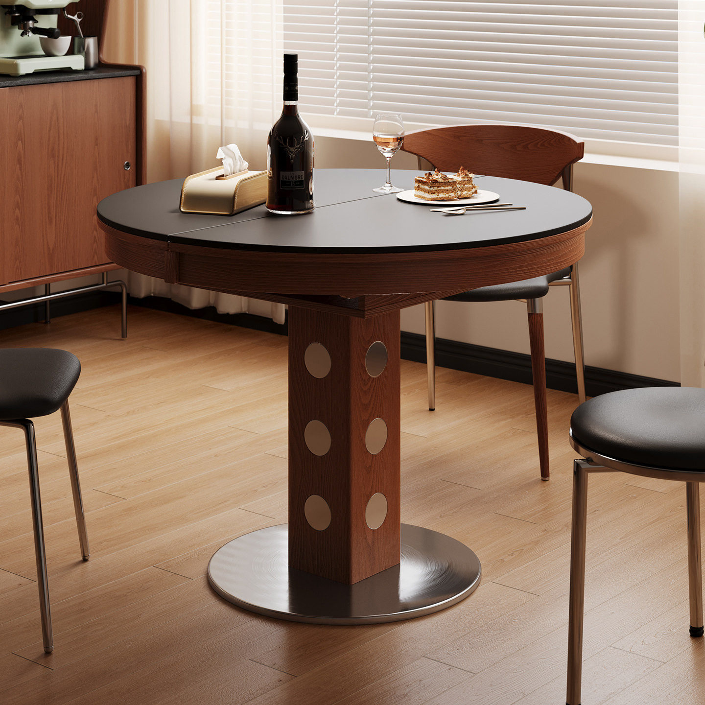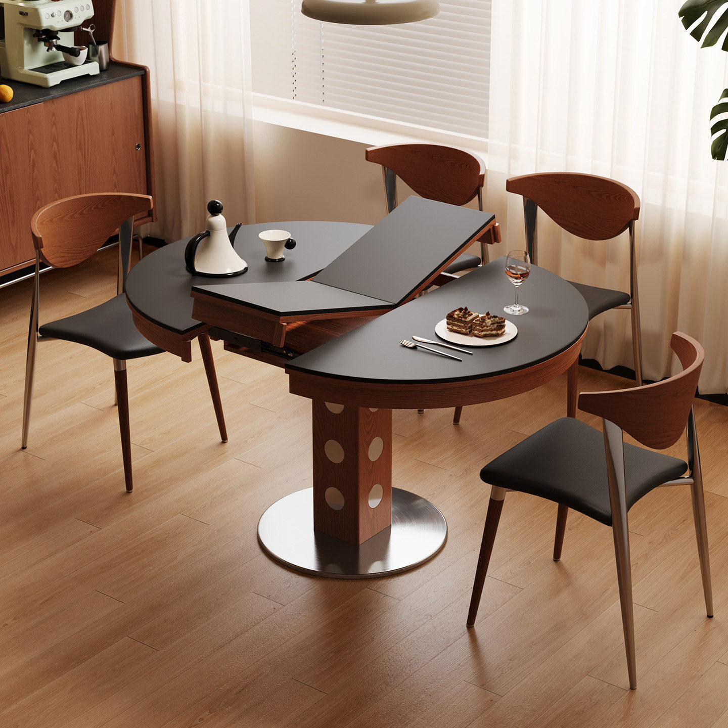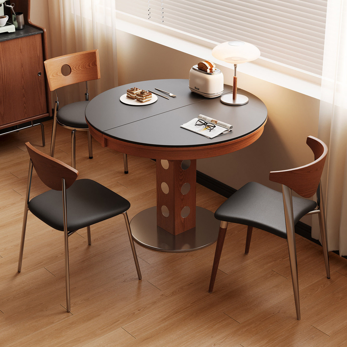 宫殿威仪椭圆形餐桌包豪斯餐桌可折叠圆形餐桌复古中古风岩板餐桌