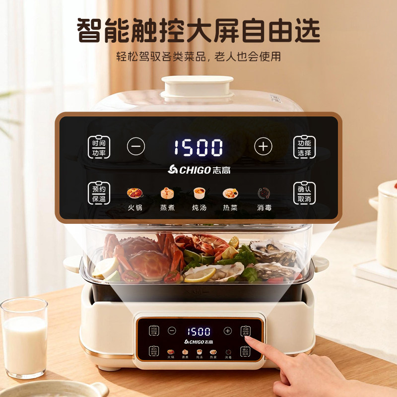 志高电蒸锅多功能蒸箱家用可拆洗分体电煮锅一体早餐机三层不锈钢