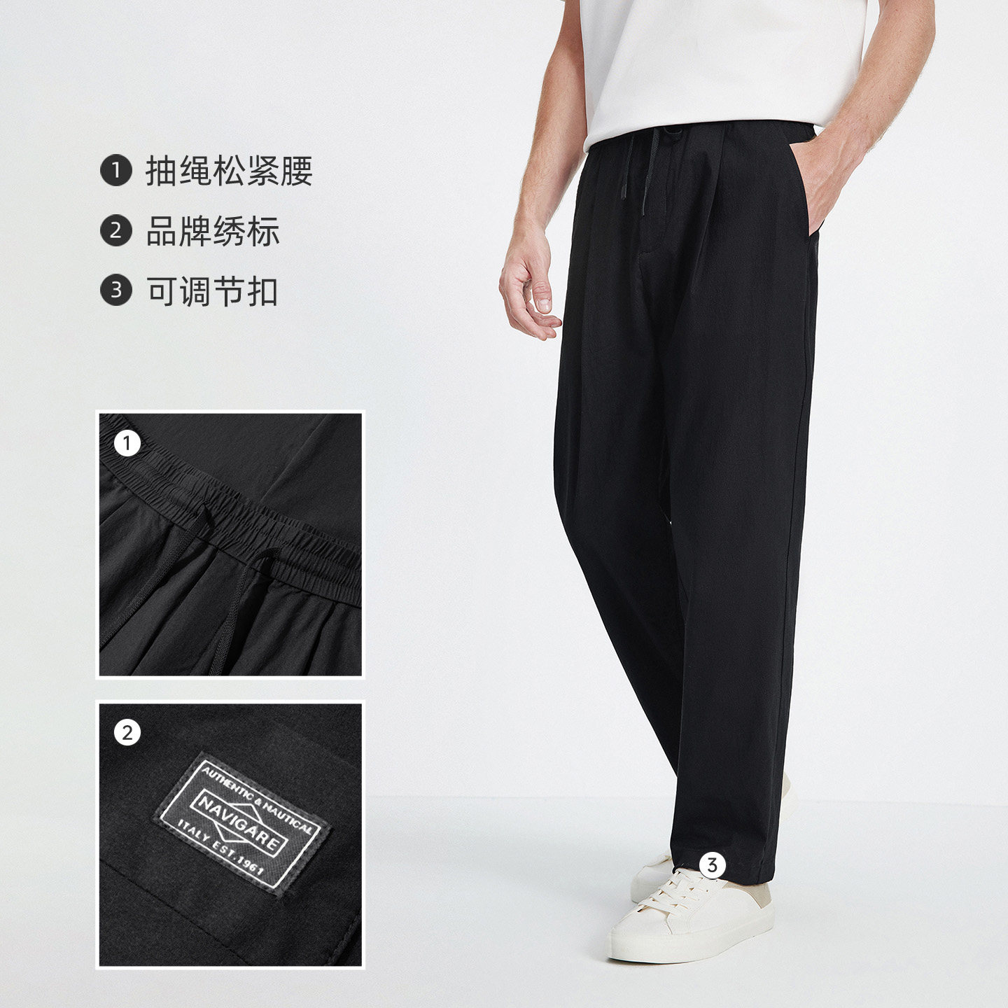 [凉感]Navigare意大利小帆船棉麻休闲裤男2026春夏新款黑色阔腿裤