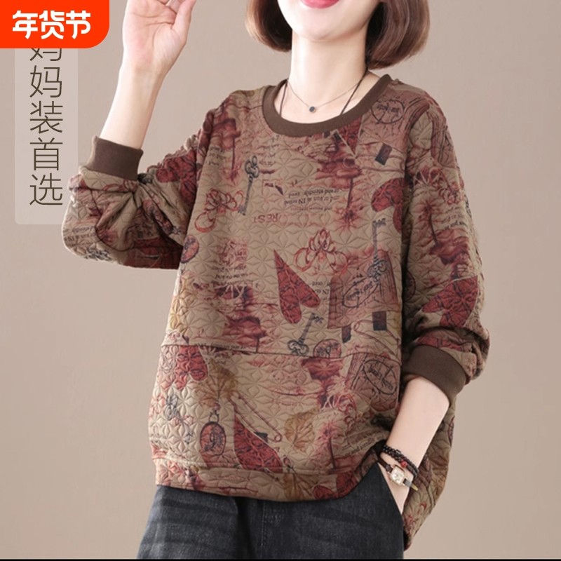 中老年女装妈妈春装卫衣2025春秋新款女装打底衫洋气大码宽松上衣