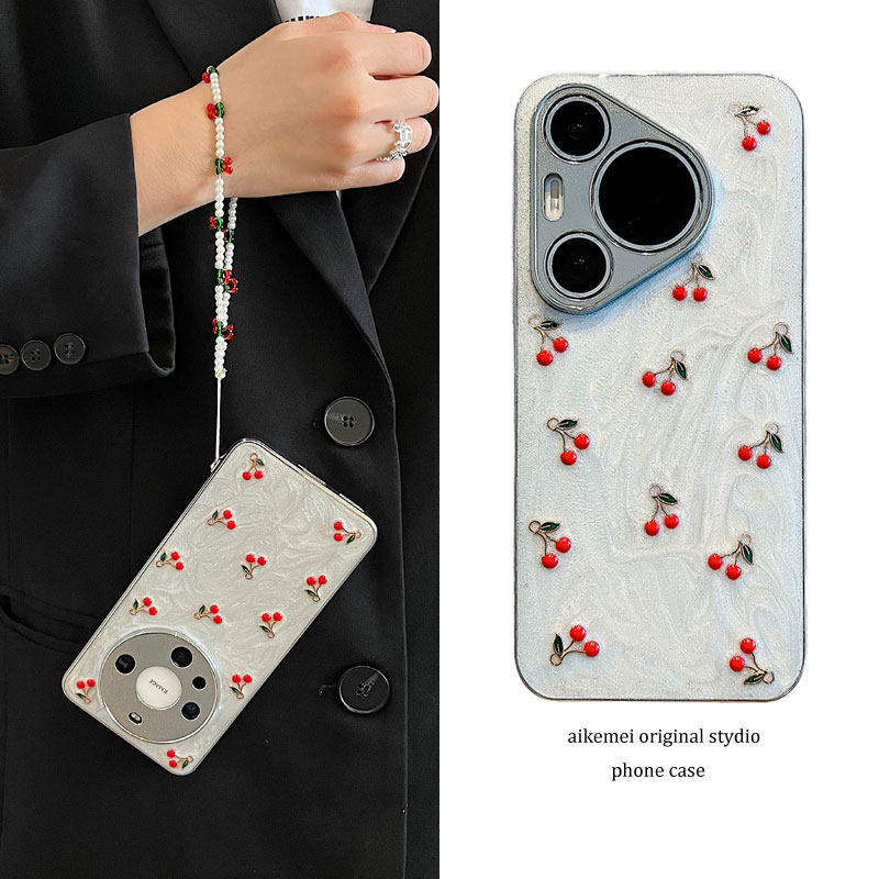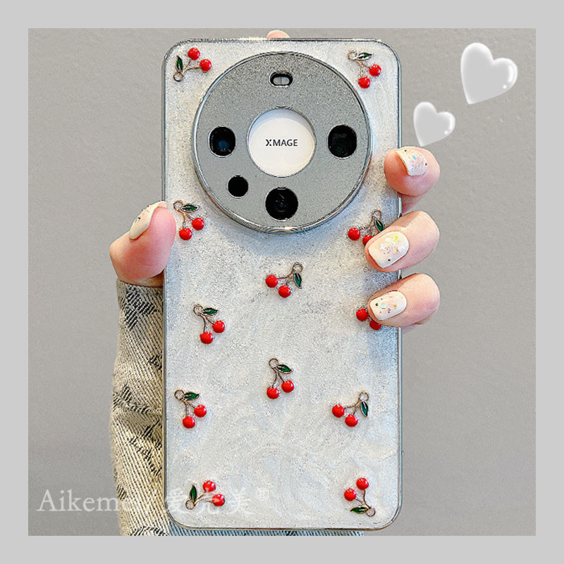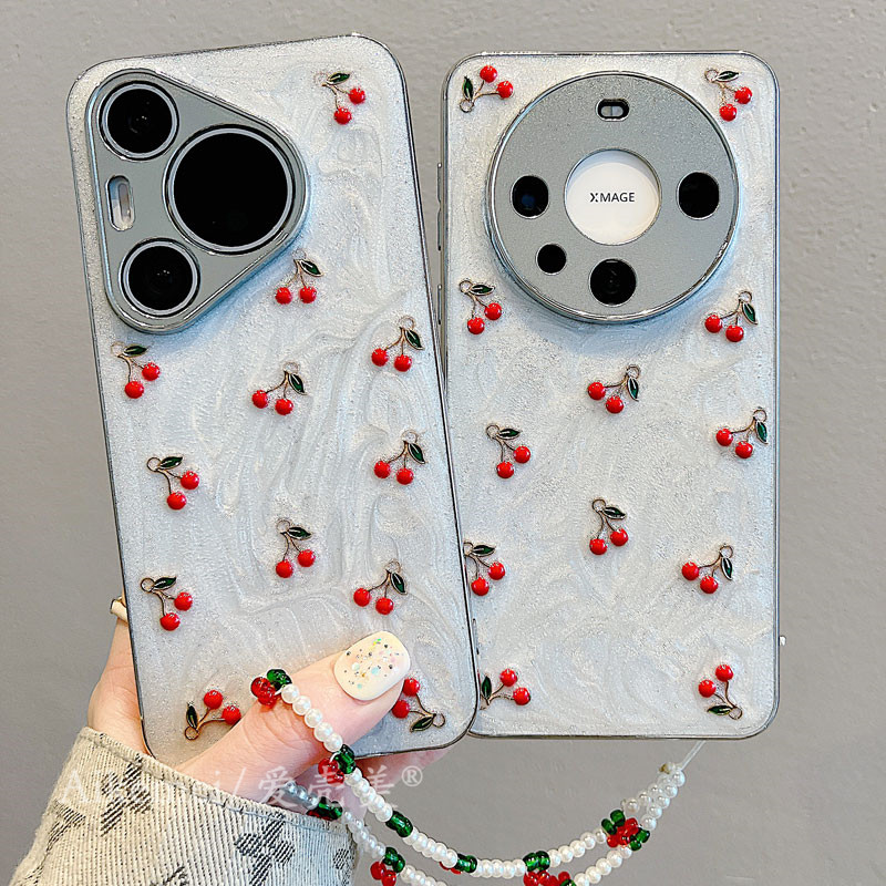 适用华为mate60pro+新款手机壳韩系ins滴胶立体樱桃mate40pro电镀银色mate50pro链条pura70pro+全包防摔女款
