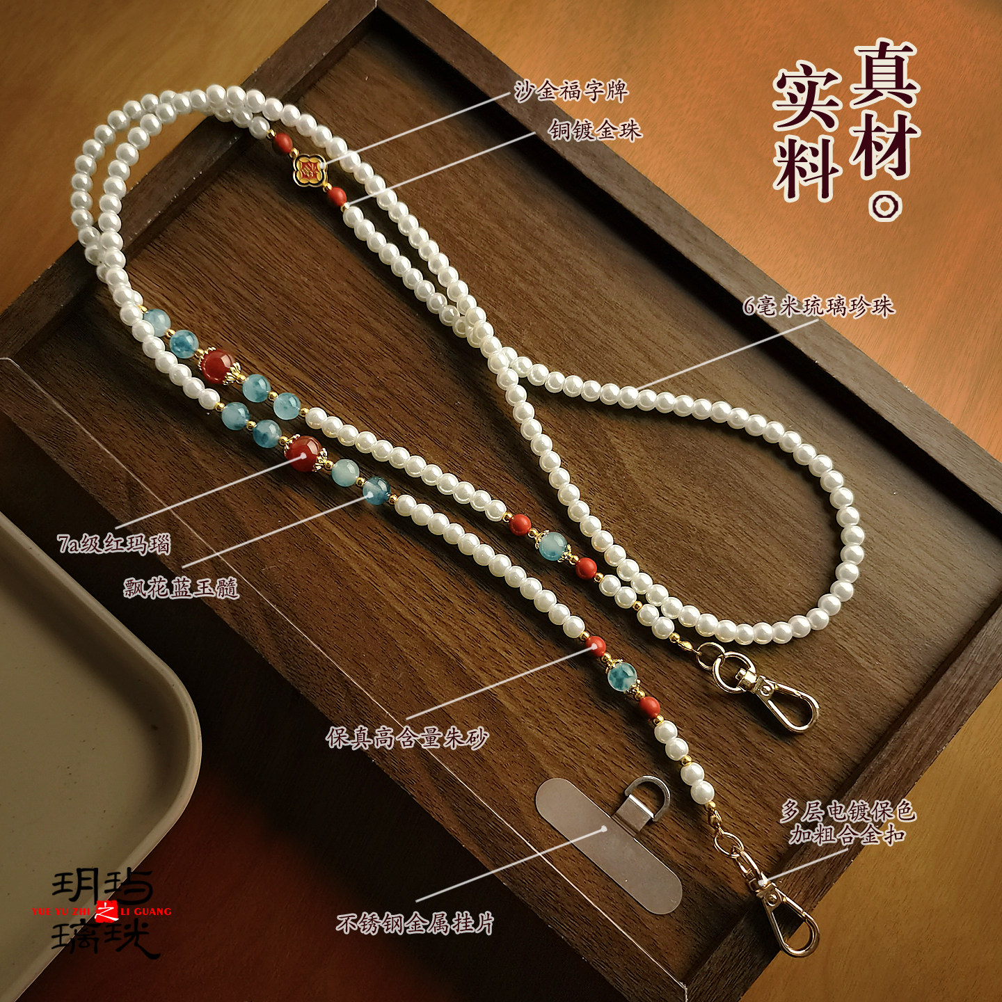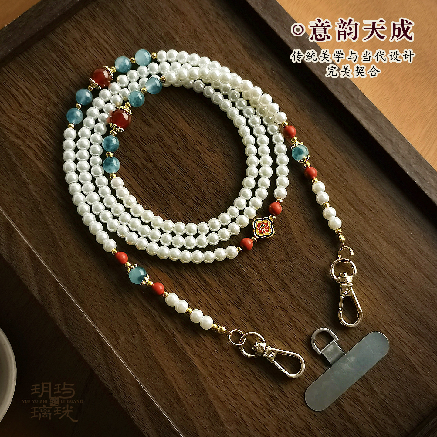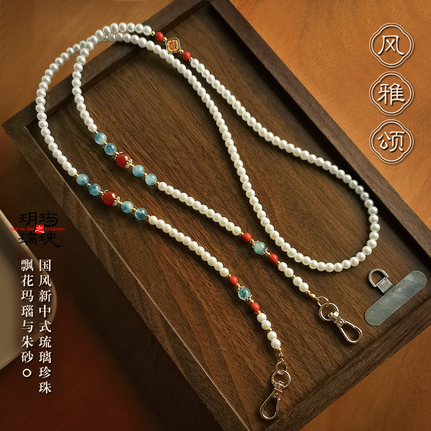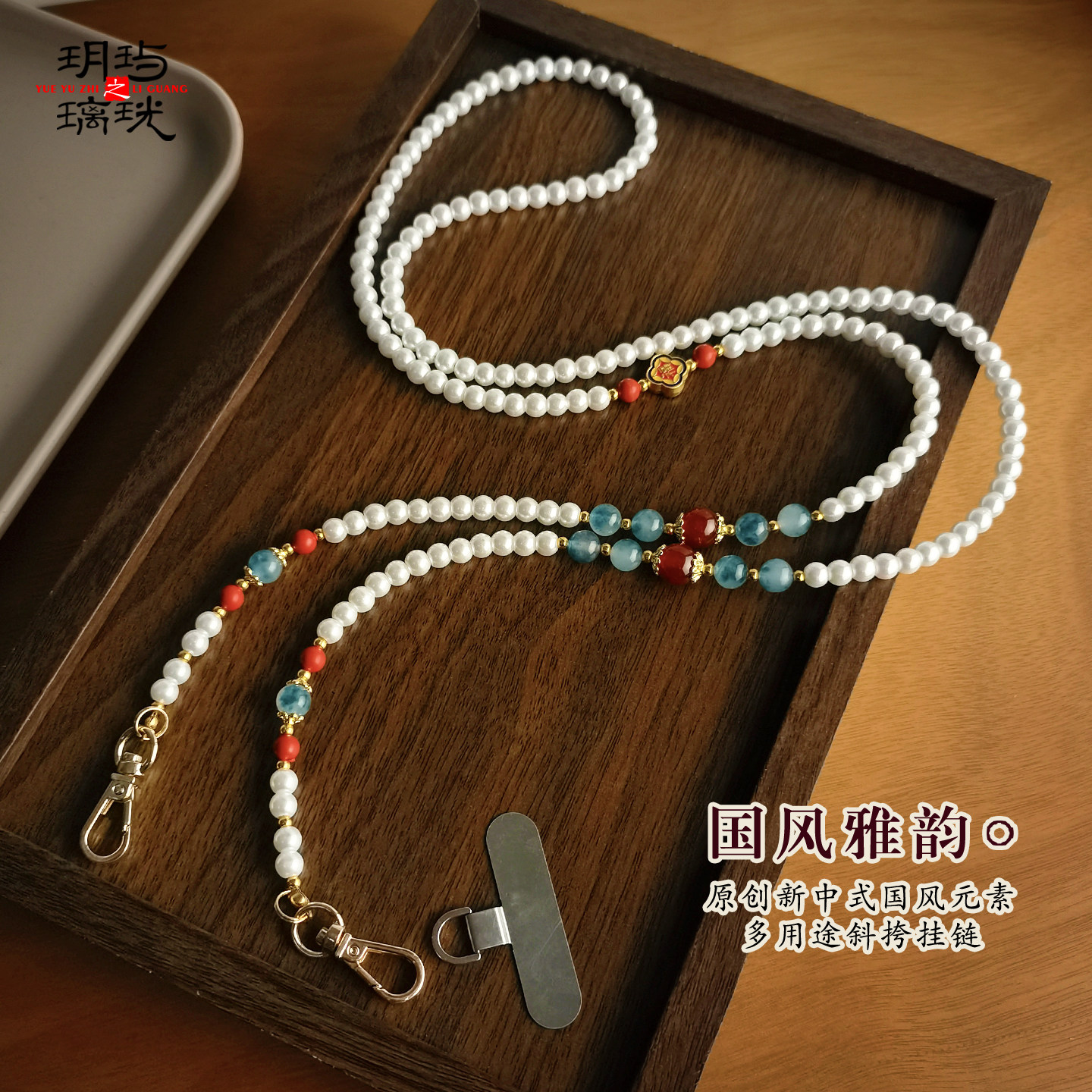 国风珍珠斜挎手机链玉髓挂件长款链条串珠包带可替换珠饰垫片挂绳