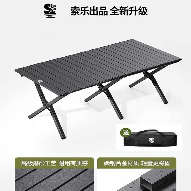 索乐户外折叠桌铝合金野餐桌子露营桌装备蛋卷桌套装野外野营桌椅