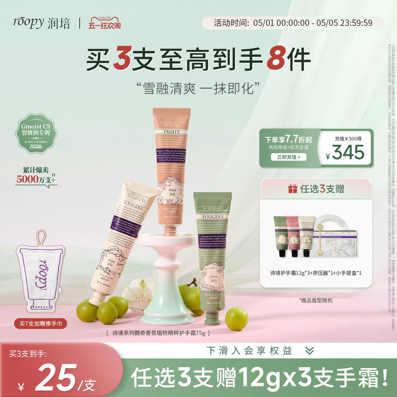【正品官方旗舰店】roopy润培护手霜女保湿补水倍润小支便携25g装