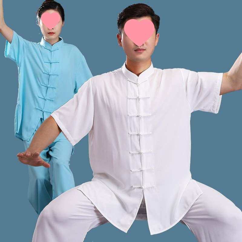 太极服女练功服男春季中国风太极拳服装中老年短袖武术套装棉加丝