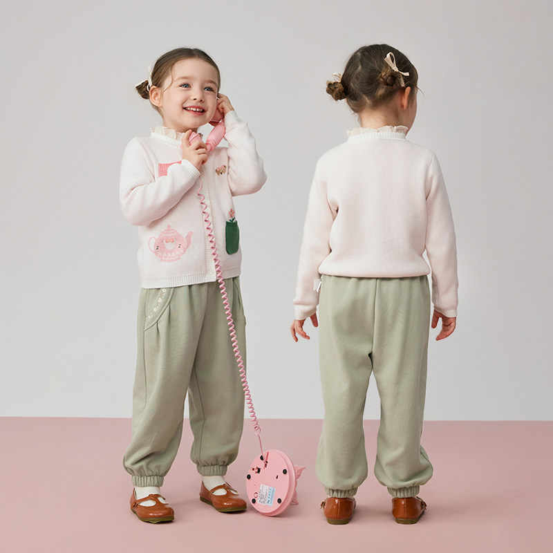 中大童开衫毛衣女洋气纯棉儿童春季针织外套男童春款新薄款打底衫