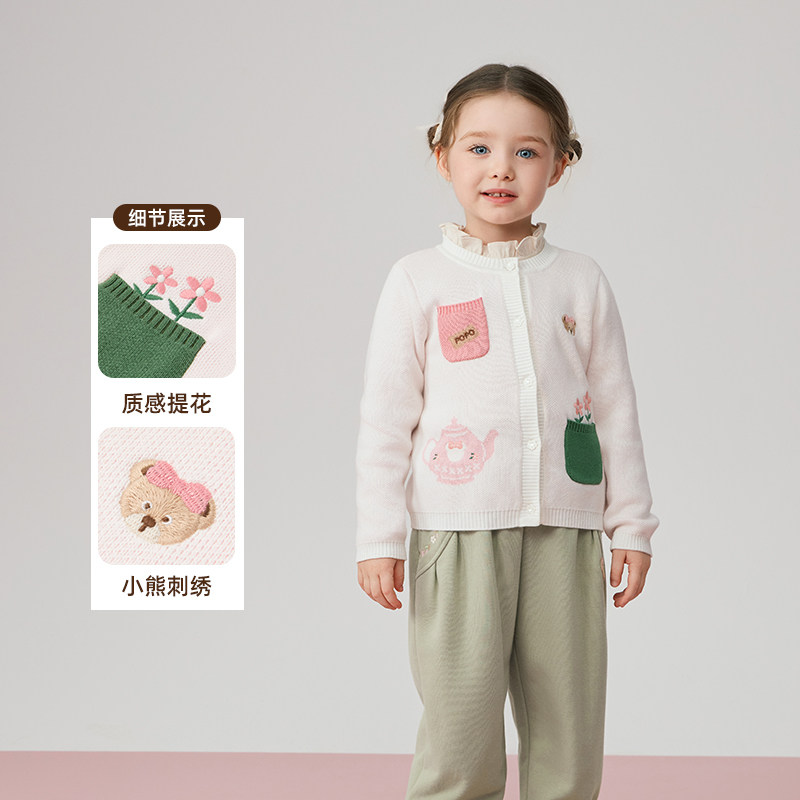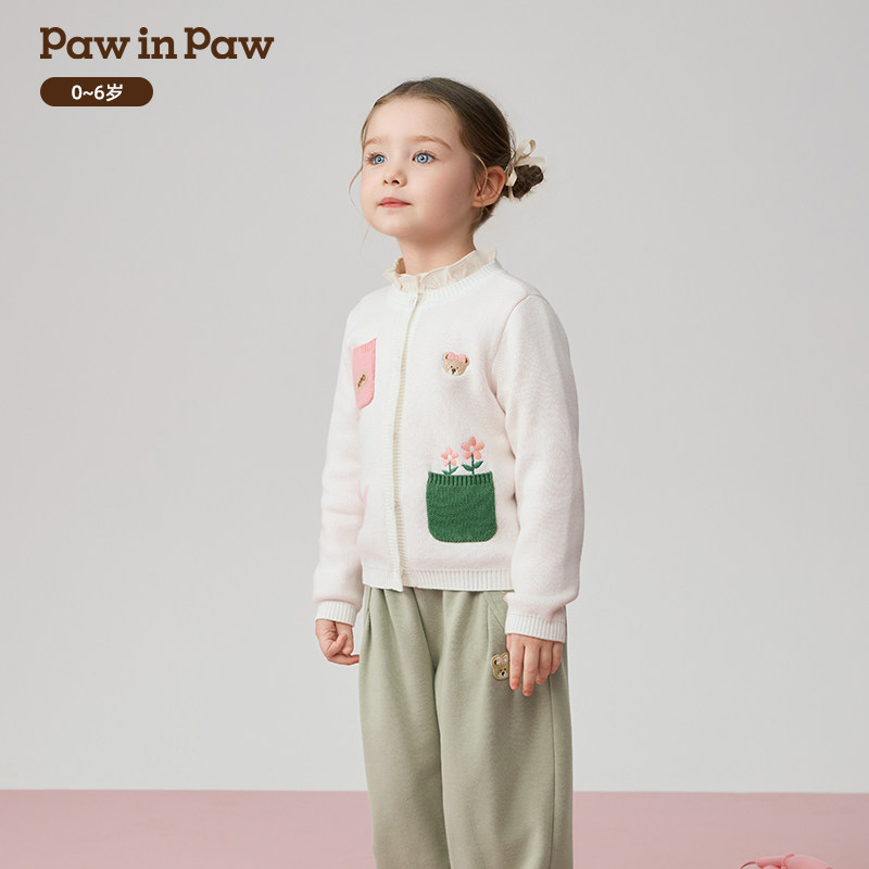 【抗静电】PawinPaw卡通小熊童装25年秋冬新款女宝宝毛织开衫外套