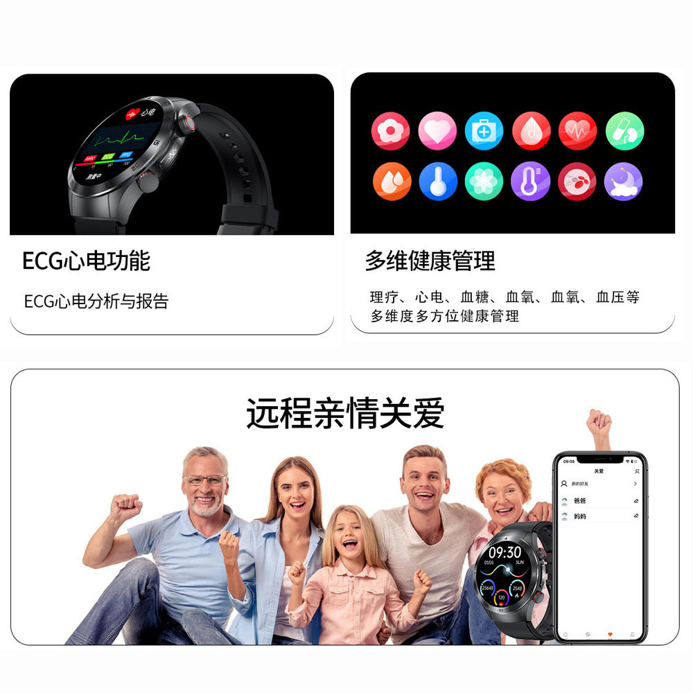 易安心 5G老人手表摔倒求救定位全网通 电话视频体温心率检测白泽