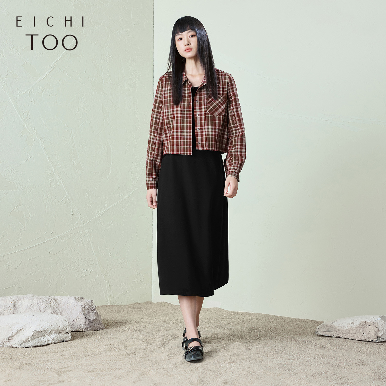 爱居兔两件式连衣裙女夏季新款格纹衬衫背心裙套装