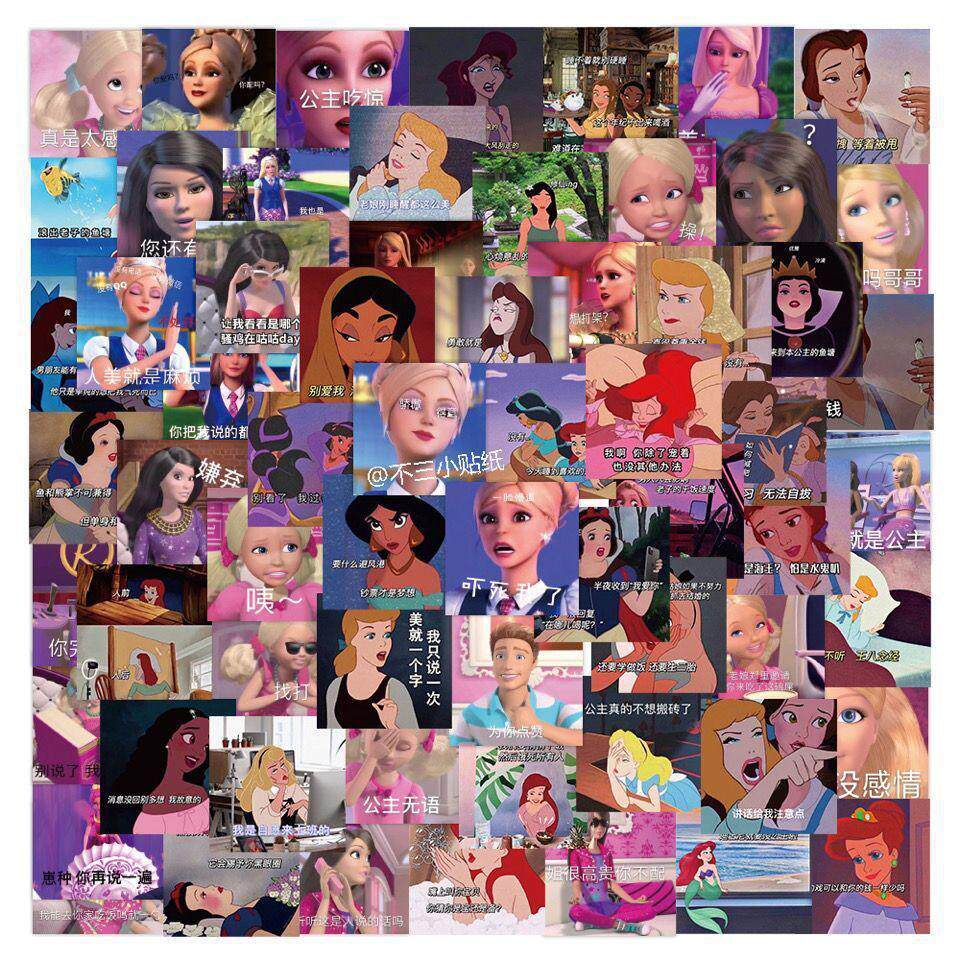 手机手账芭比娃娃贴纸公主表情包抽象DIY160张装饰笔记本电脑防水
