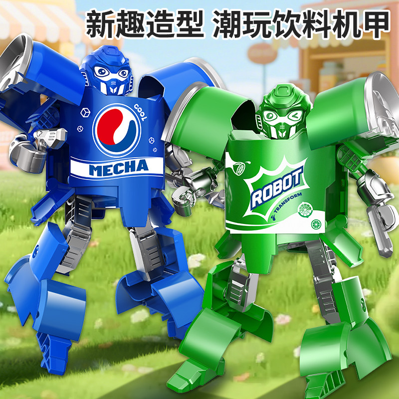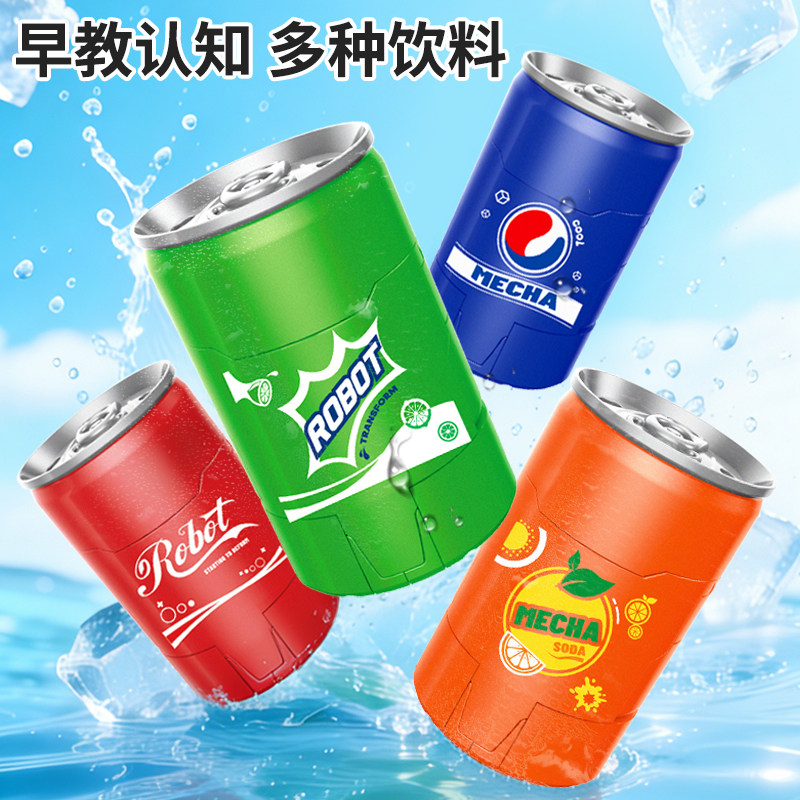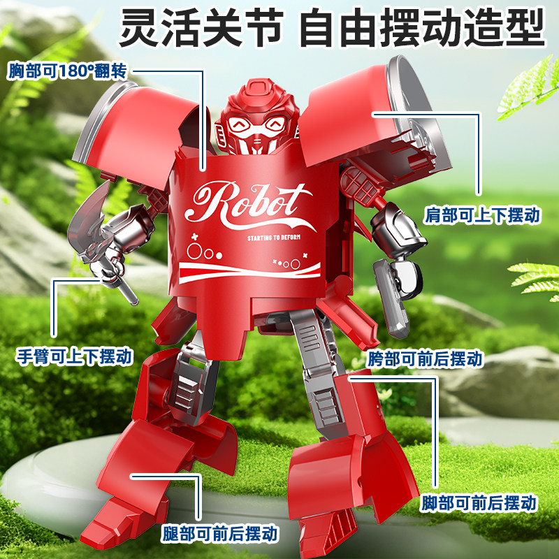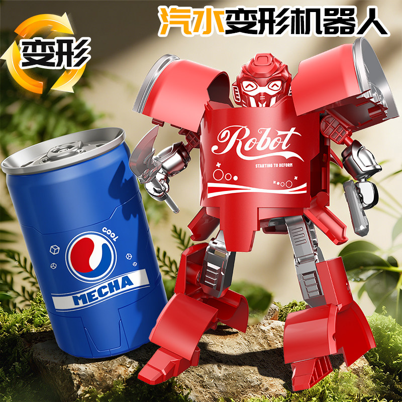 儿童变形玩具男孩金刚汽水武士可乐瓶机甲机器人模型易拉罐手办