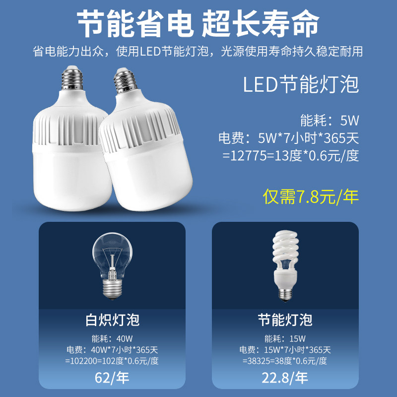 led灯泡超亮节能灯白光家用省电E27大螺口客厅室内灯照明圆柱形灯