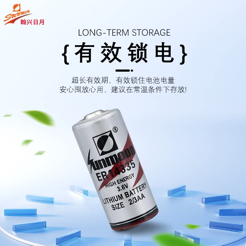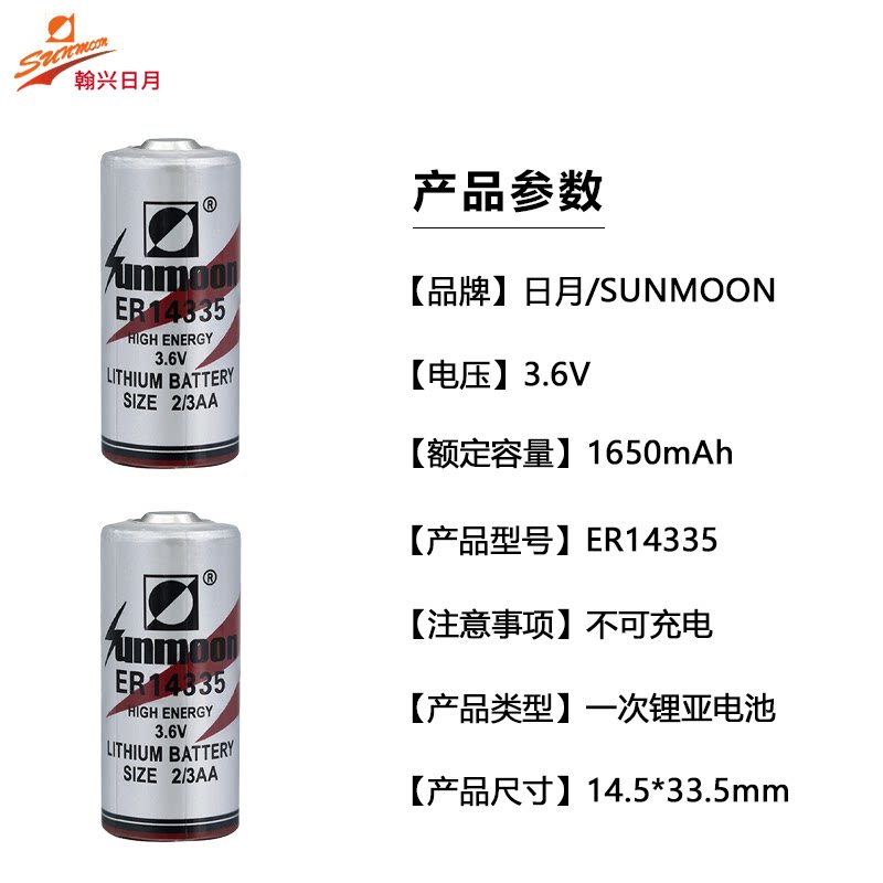 Sunmoon日月ER14335 3.6V锂电池2/3AA适用于CO硫化氢气体检测仪无线温湿度采集器 救生衣报警器PLC伺服电池