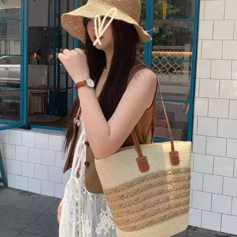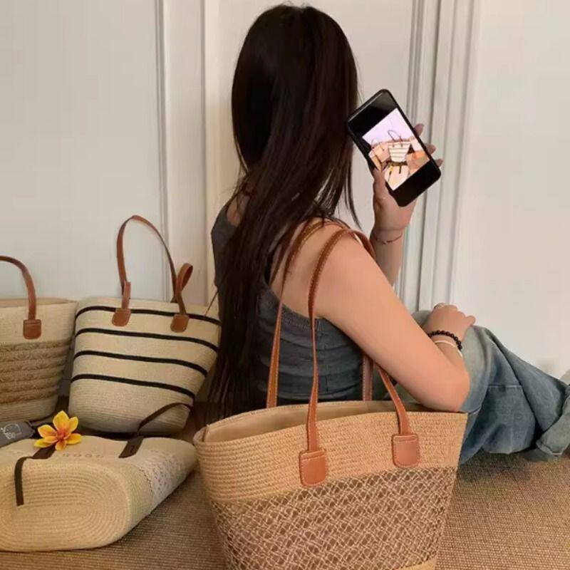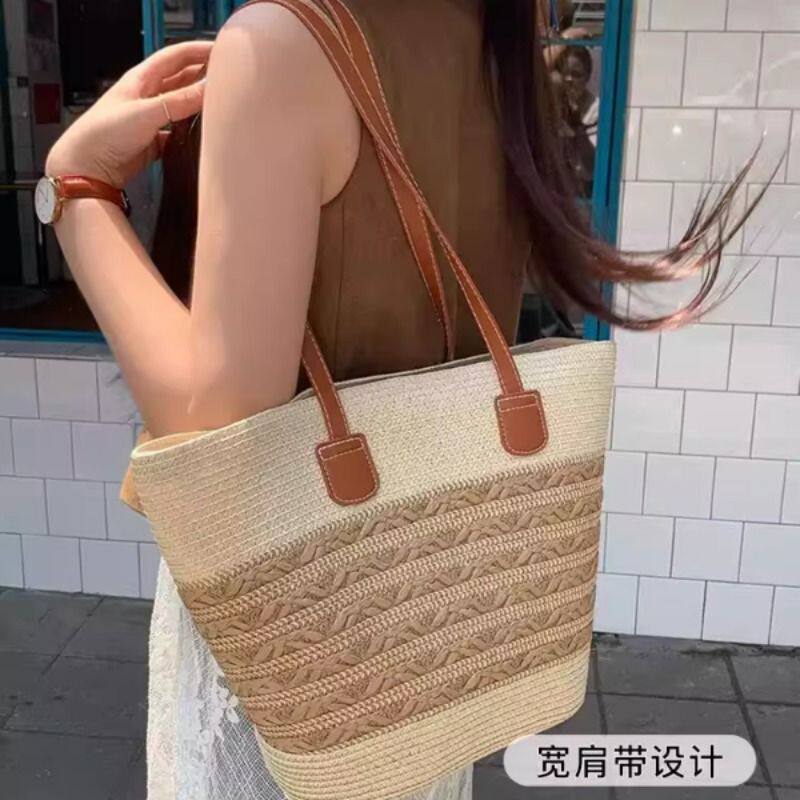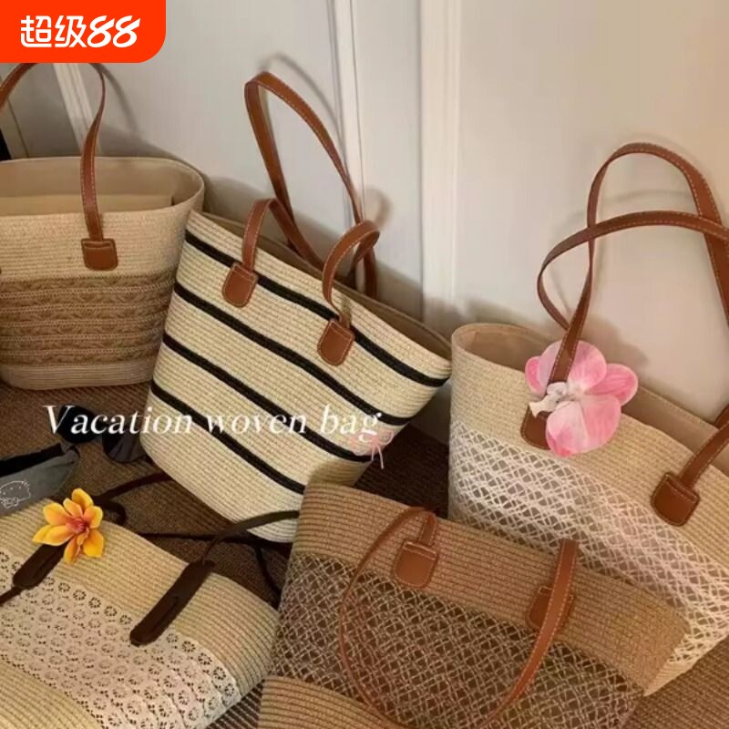 法式田园风草编包包女夏季海边沙滩大容量单肩包时尚通勤托特包