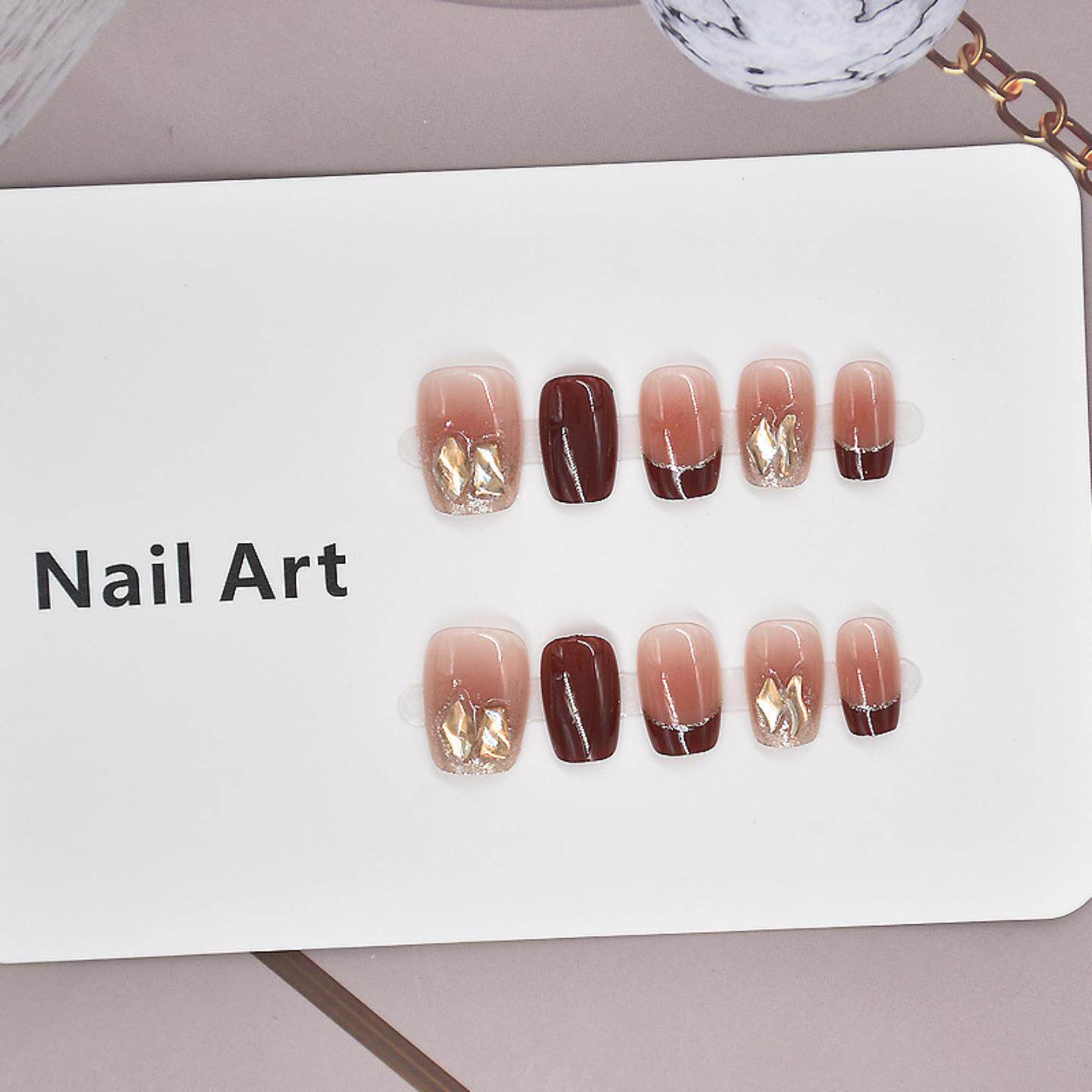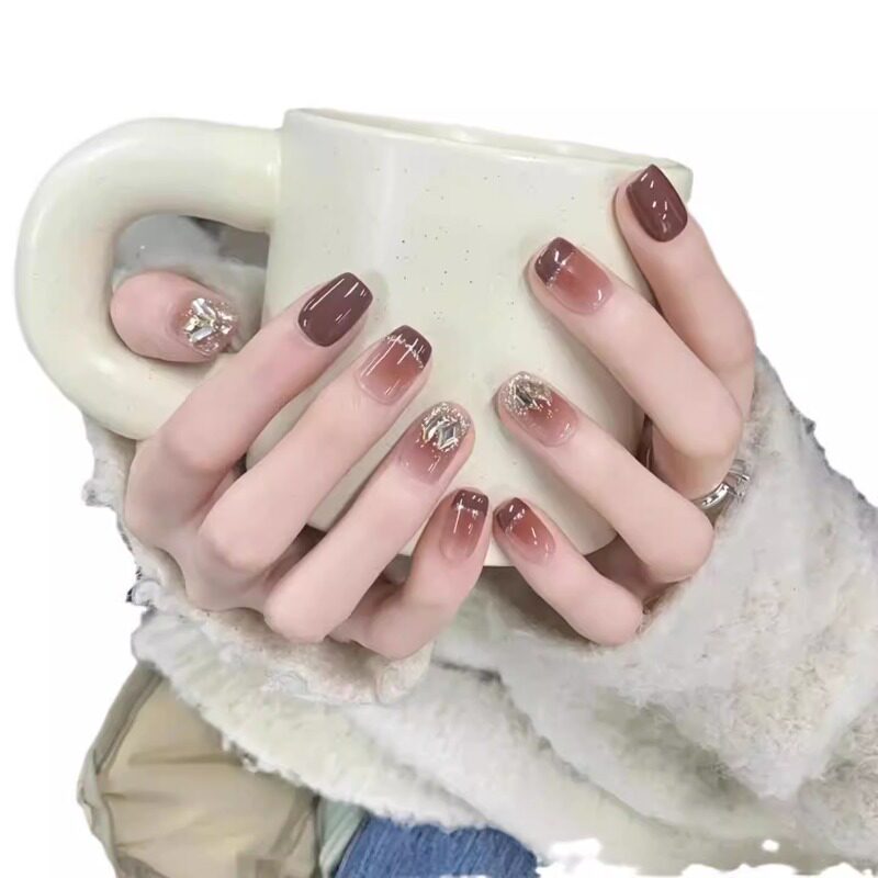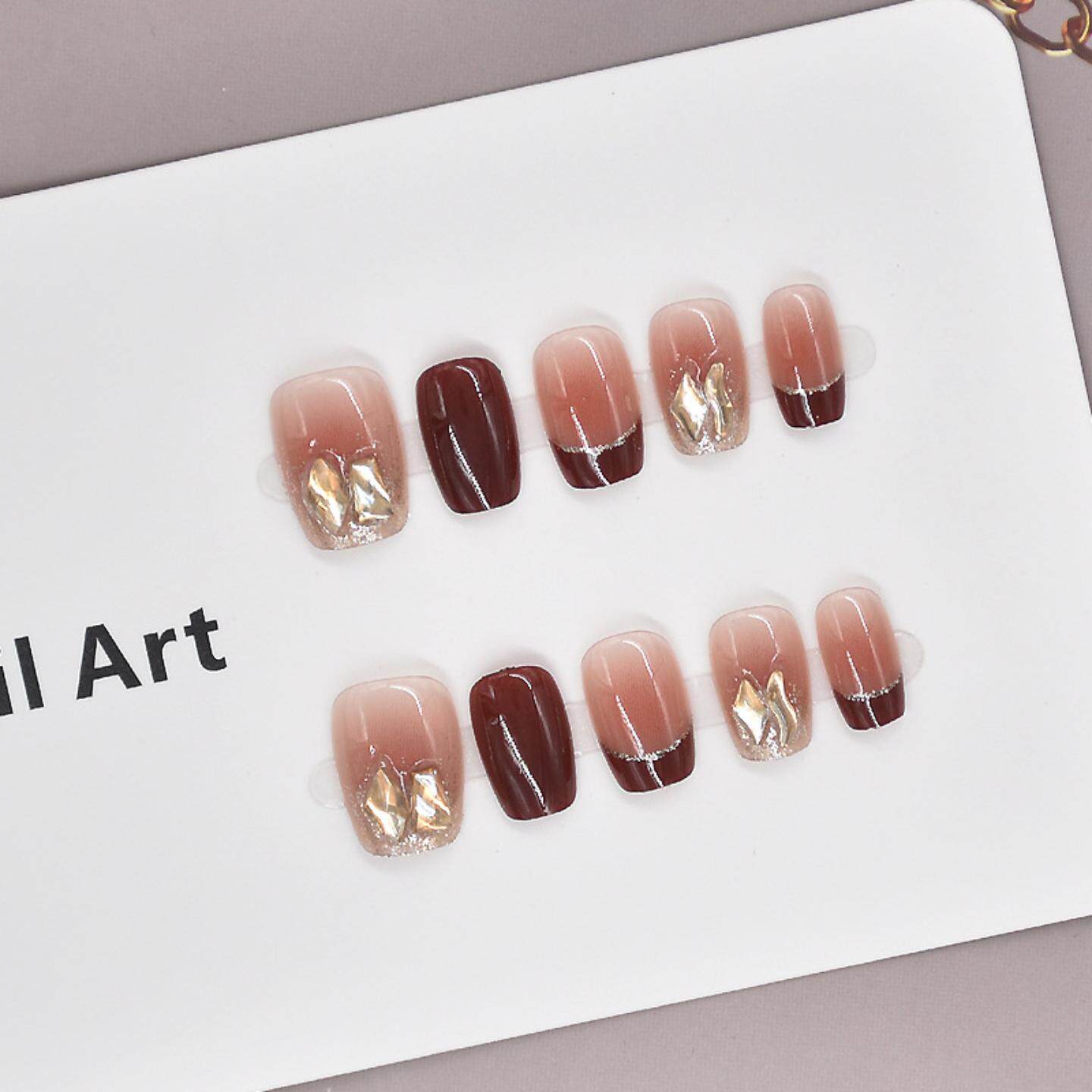 2026年秋冬新款酒红法式腮红穿戴甲ins短款显白高级带钻美甲甲片