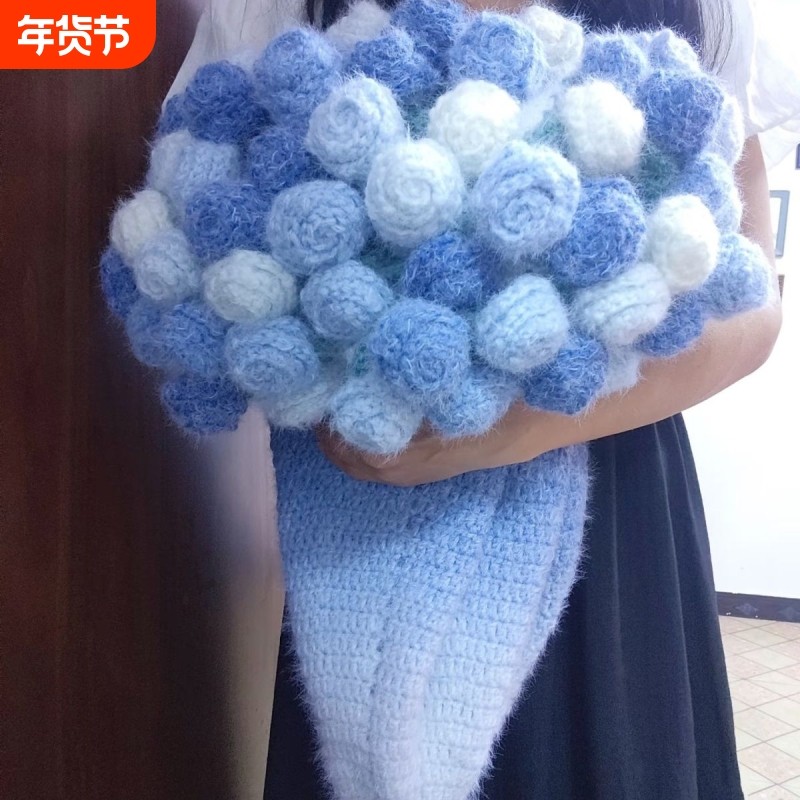 魔法球长绒渐变玫瑰花束毯子丁达尔渐变羊毛线diy自制送女友礼物
