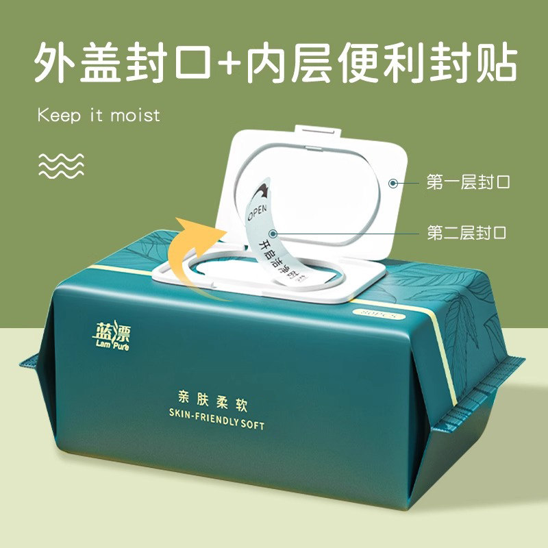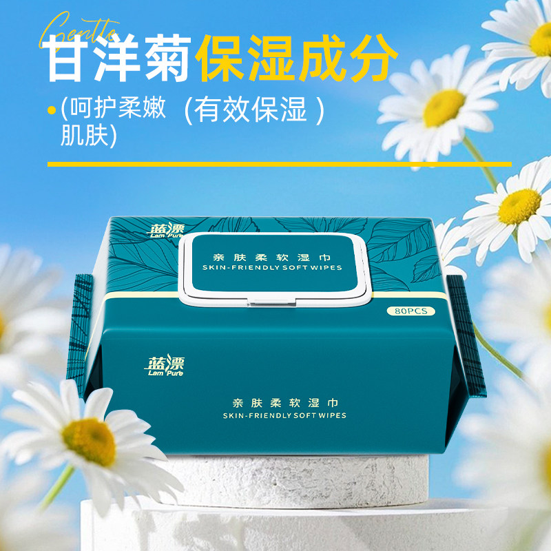 蓝漂湿巾80抽加厚亲肤柔湿巾母婴清洁手口湿巾家用湿纸巾大包正品