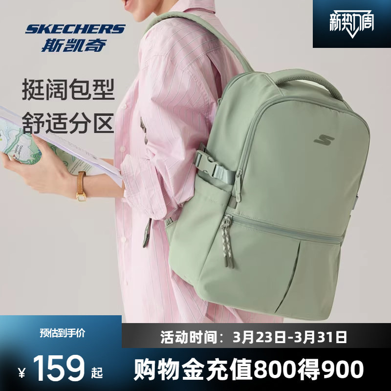 斯凯奇双肩包大容量简约旅行背包开学季百搭大学生运动休闲书包