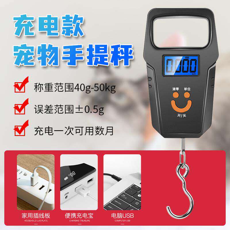 宠物秤手提电子猫咪称重器商用狗小动物体重克台秤充电卖菜多功能
