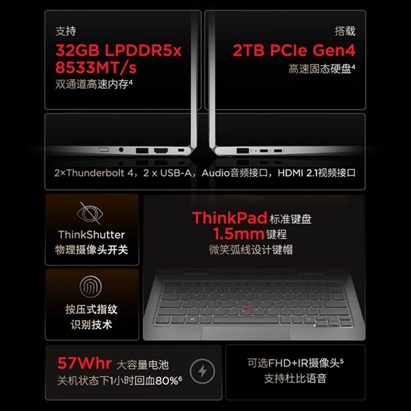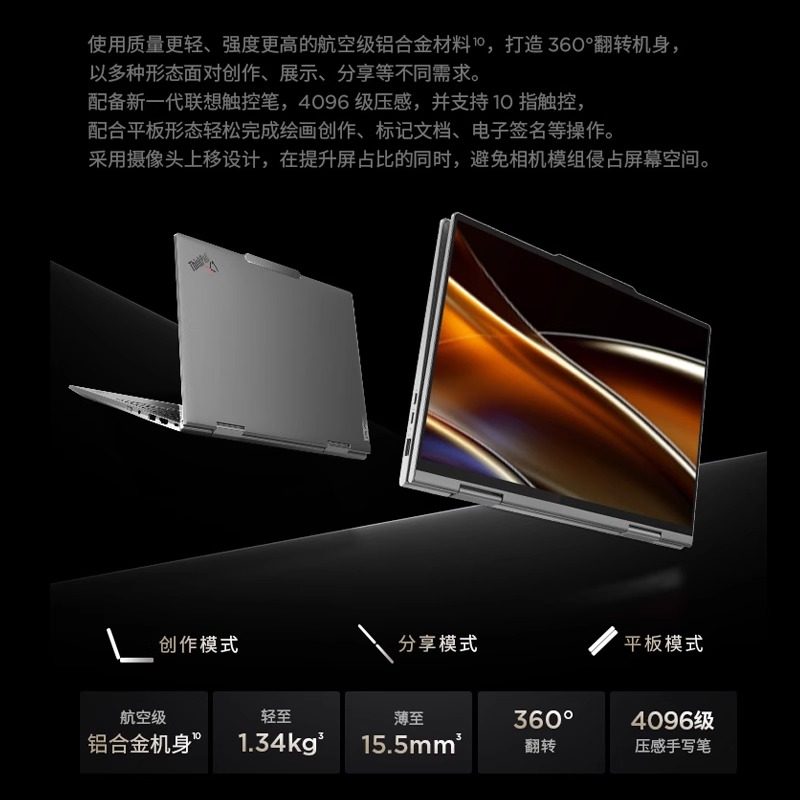 【国家补贴20%】联想ThinkPad X1 Yoga 2in1 25新款 英特尔Evo酷睿Ultra7 翻转触控屏商务办公笔记本电脑