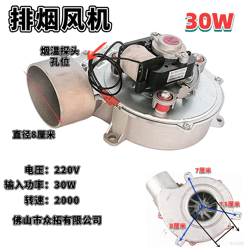 众拓燃木颗粒生物质颗粒取暖炉真火采暖炉30W高温排烟引风机